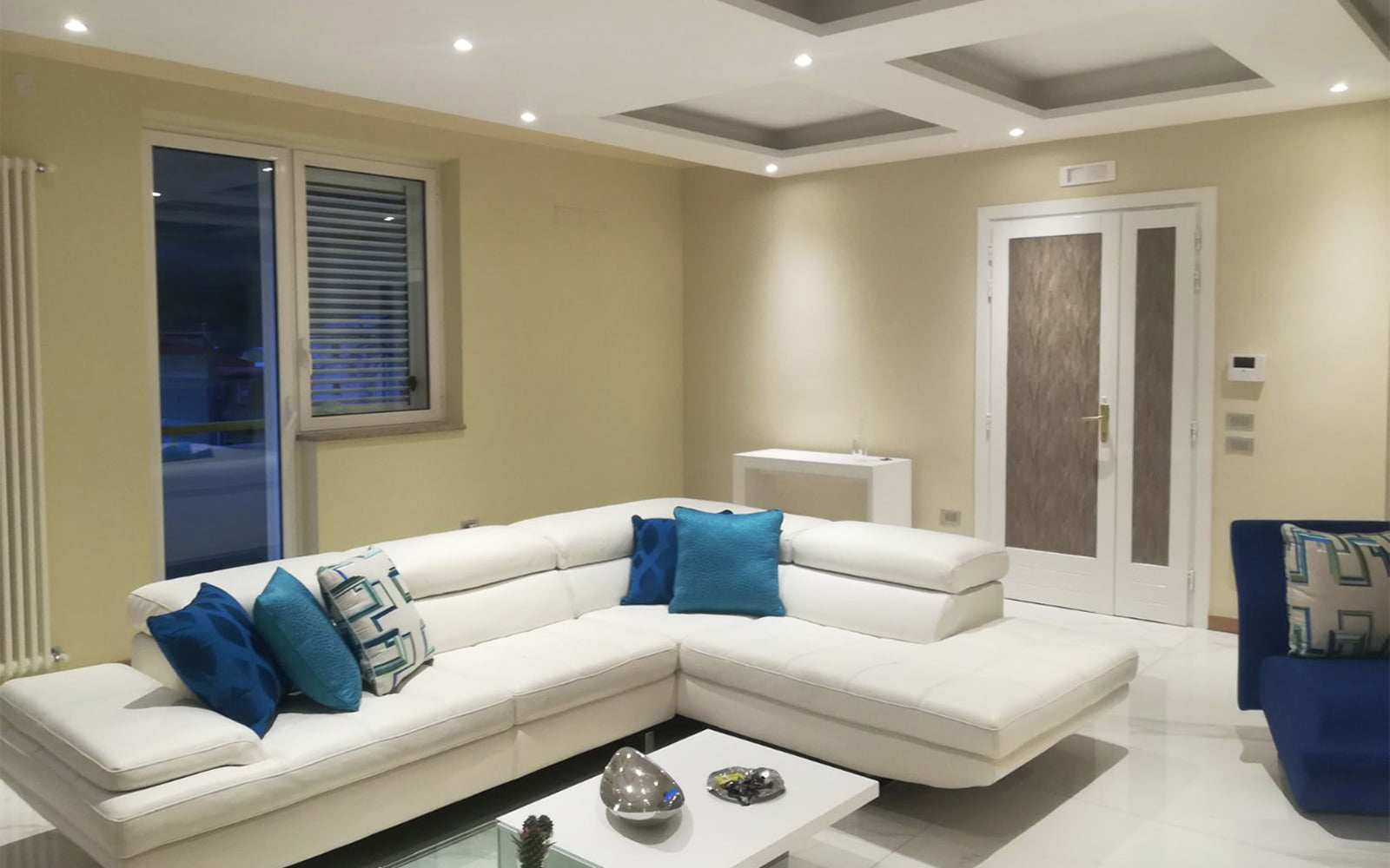 Armonia, sorpresa e contemporaneità: le parole chiave del progetto di ristrutturazione dell’appartamento di 180 mq ubicato a Castel San Giorgio nella provincia di Salerno.
