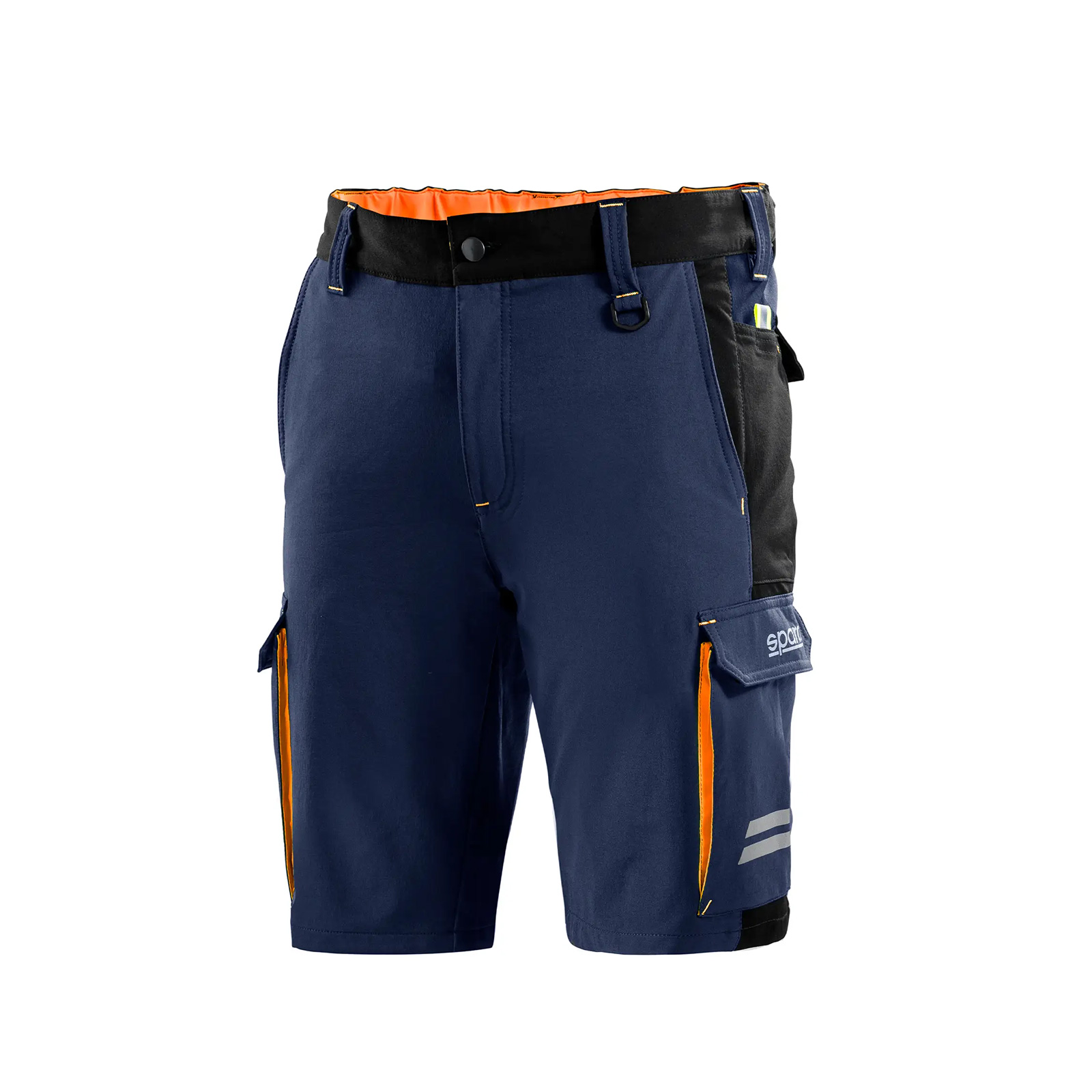 Pantaloncini da lavoro Sparco Tech di colore blue marine e arancio fluo