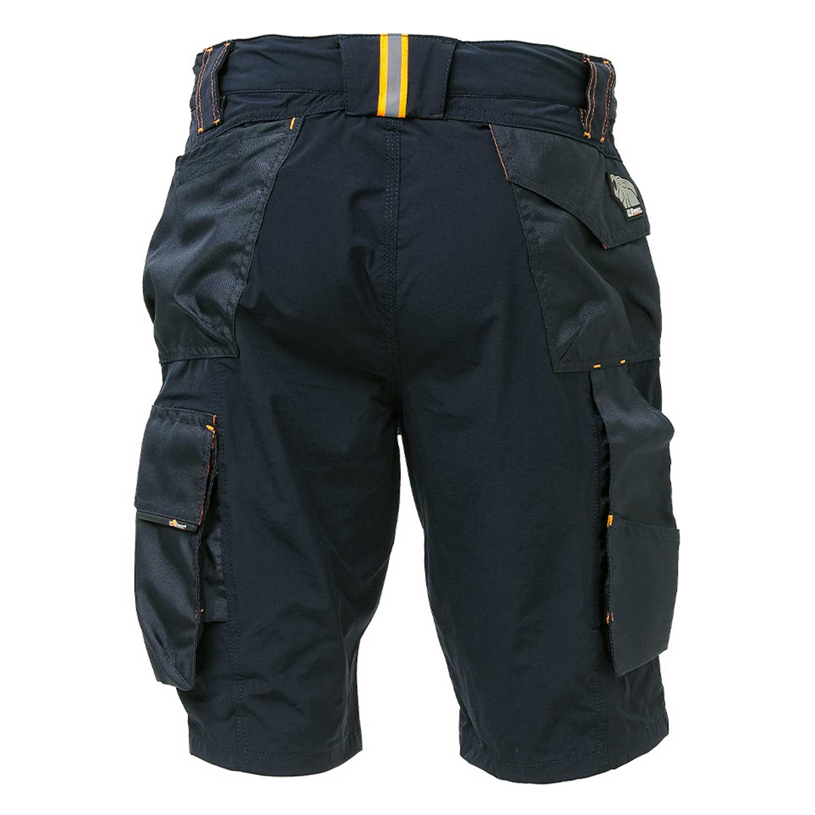 Il bermuda è dotato di due ampie tasche anteriori, elastico in vita con un sistema innovativo di regolazione a scomparsa. Carrè posteriore accentuato per una maggior protezione della parte lombare e nastro reflex su passante tubolare posteriore. Tasca laterale porta utensili, multifunzionale con porta badge a scomparsa, due tasche posteriori di cui una con pattina e una con chiusura di sicurezza a velcro. Due tasche, chiuse con zip in corrispondenza del tascone laterale e della tasca frontale destra. Triple cuciture, bottone antigraffio, zip YKK, Slim Fit.