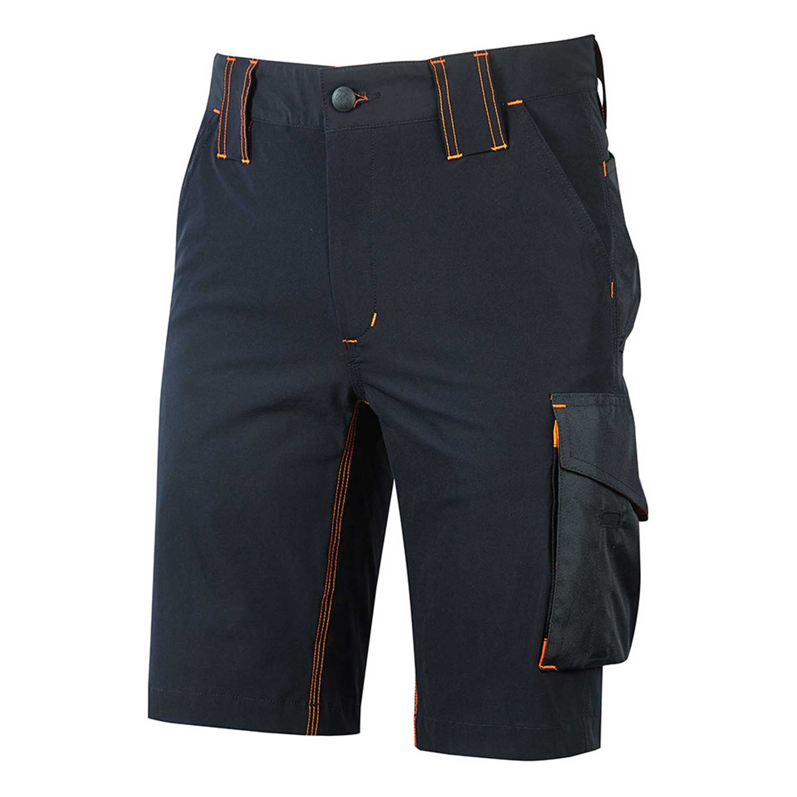 Bermuda da lavoro colore blu in tessuto U-4 (U-Power 4 way stretch) molto comodo, resistente, morbido sulla pelle, idrorepellente, traspirante e asciuga rapidamente.