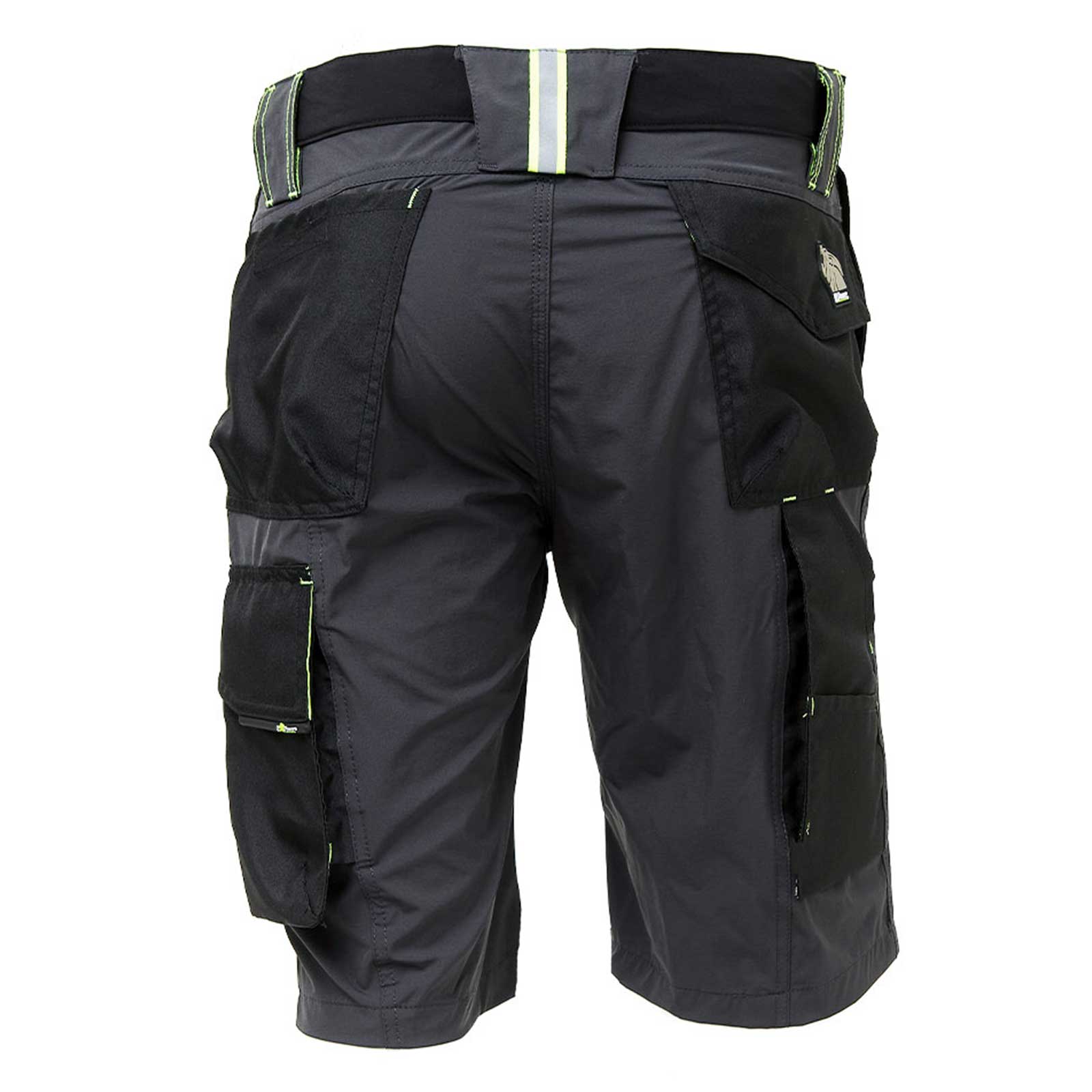 Il bermuda è dotato di due ampie tasche anteriori, elastico in vita con un sistema innovativo di regolazione a scomparsa. Carrè posteriore accentuato per una maggior protezione della parte lombare e nastro reflex su passante tubolare posteriore. Tasca laterale porta utensili, multifunzionale con porta badge a scomparsa, due tasche posteriori di cui una con pattina e una con chiusura di sicurezza a velcro. Due tasche, chiuse con zip in corrispondenza del tascone laterale e della tasca frontale destra. Triple cuciture, bottone antigraffio, zip YKK, Slim Fit.