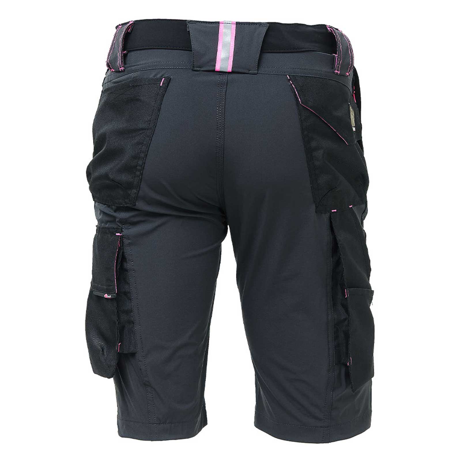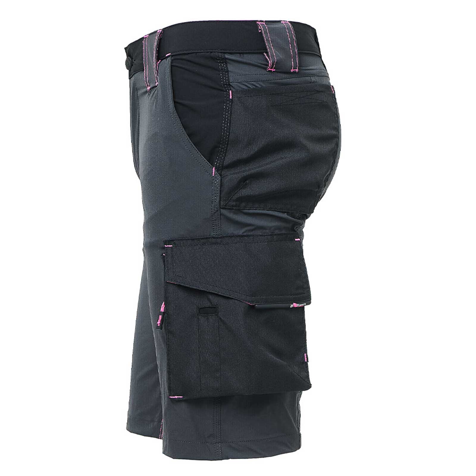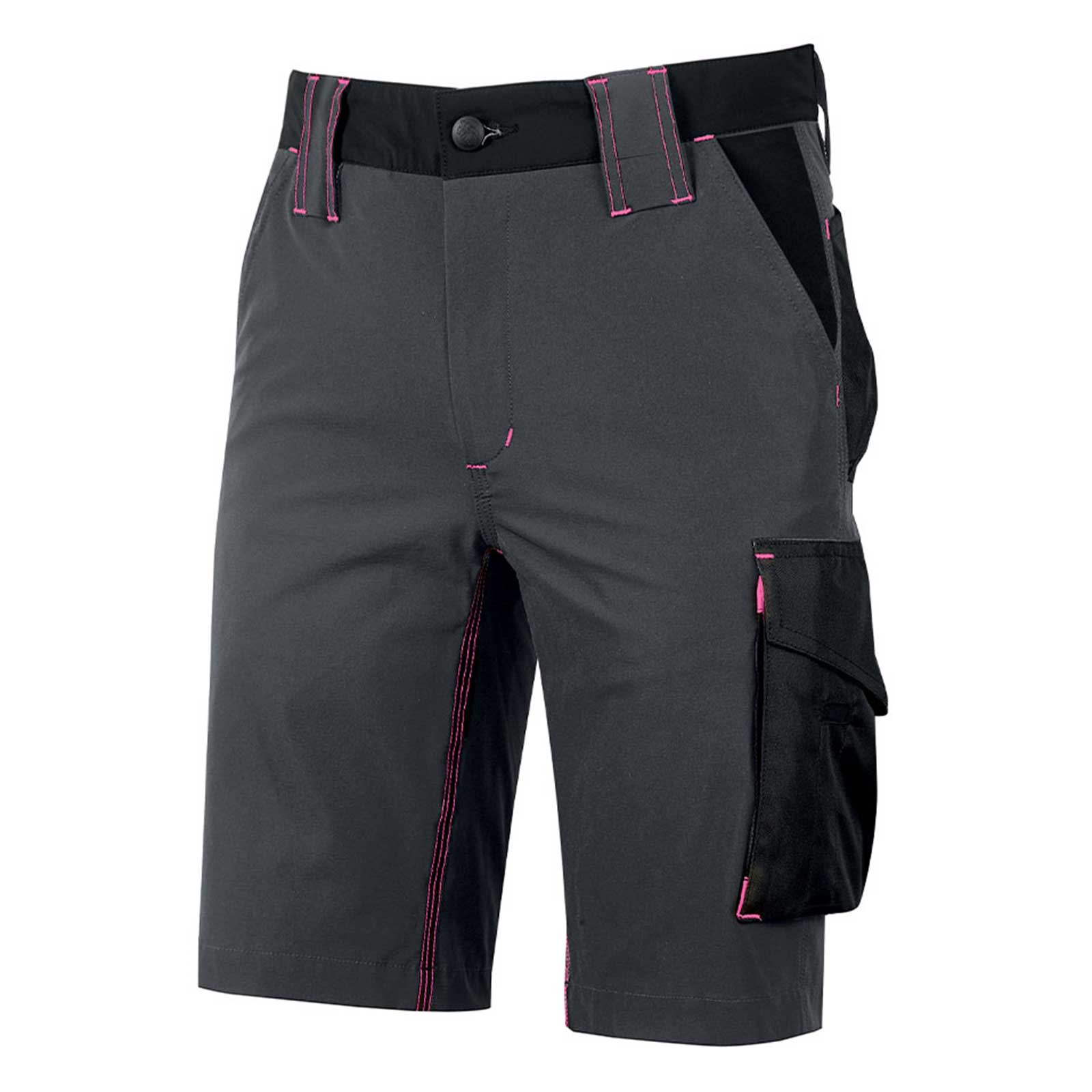Bermuda da lavoro colore grigio e rosa Grey Fucsia in tessuto U-4 (U-Power 4 way stretch) molto comodo, resistente, morbido sulla pelle, idrorepellente, traspirante e asciuga rapidamente.