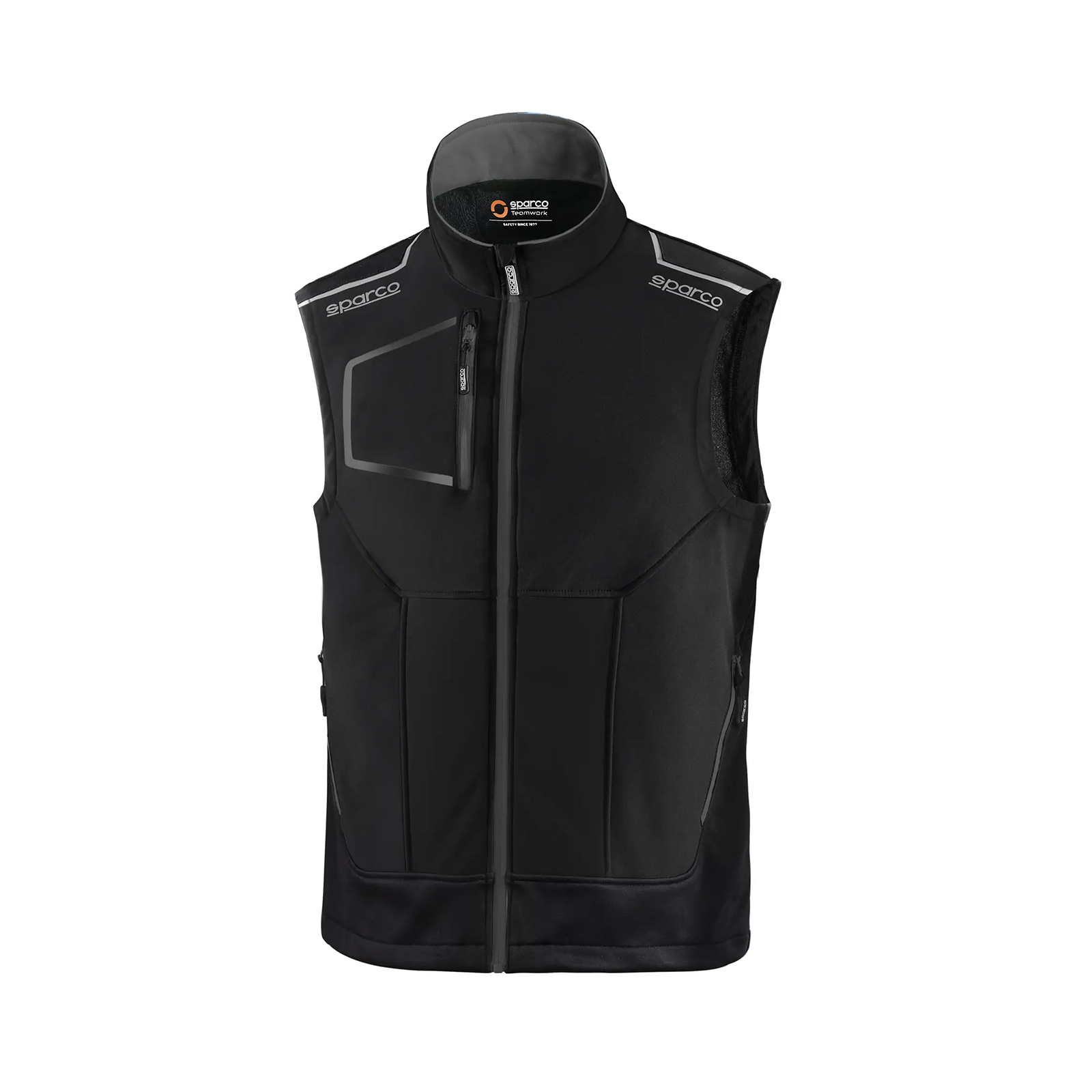 Il gilet Sparco Tech, nero con inserti grigio scuro, è comodo e versatile.