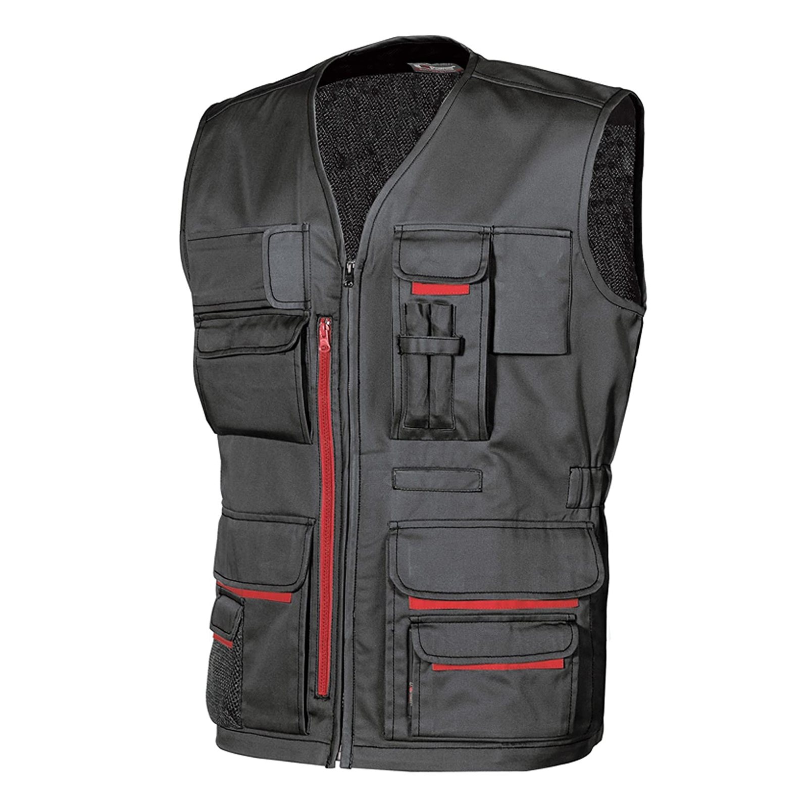 Comodo e pratico gilet 4 stagioni, dotato di tasche multifunzionali su petto con portabadge a scomparsa e tasca portacellulare, tasche multifunzionali a fondo vita con chiusura di sicurezza in velcro. Ampie fasce di aerazione in rete 3D sono presenti sotto il giromanica ed una rete traspirante interna su schiena. Il gilet è dotato di rinforzi di supporto per velcri. Si abbina al Pantalone Smile e al Bermuda Party. Il gilet è ideale per carpentieri, elettricisti, idraulici, installatori, magazzinieri.