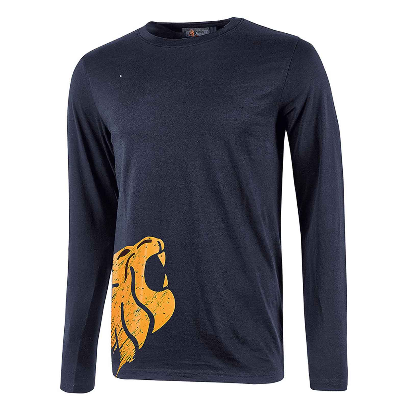 T-Shirt a manica lunga in 100% cotone. Vestibilità slim-fit, colletto a costine. Stampa serigrafica “testa di leone” e logo U-Power ricamato in outline.
