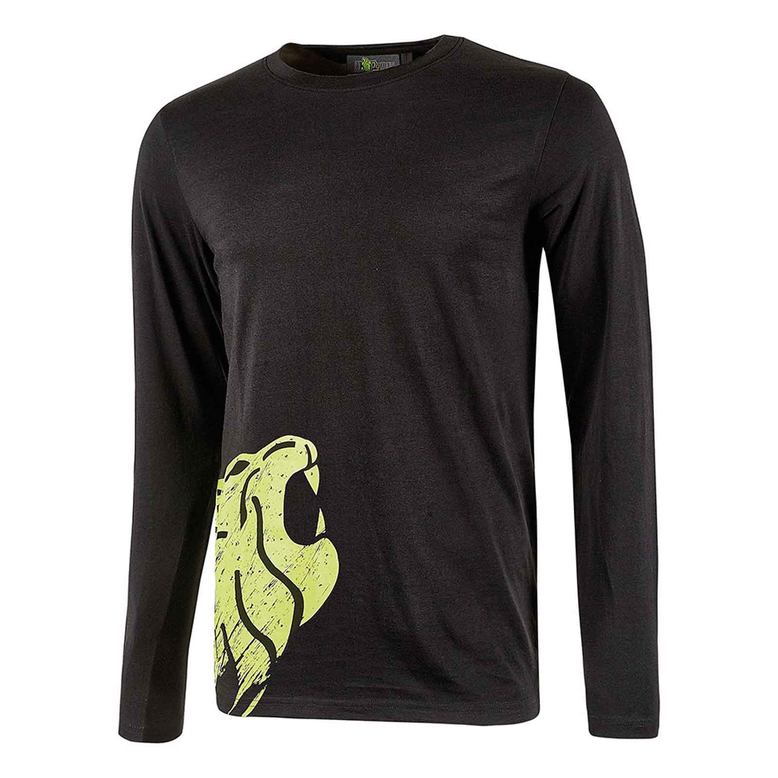 T-Shirt a manica lunga in 100% cotone. Vestibilità slim-fit, colletto a costine. Stampa serigrafica “testa di leone” e logo U-Power ricamato in outline.