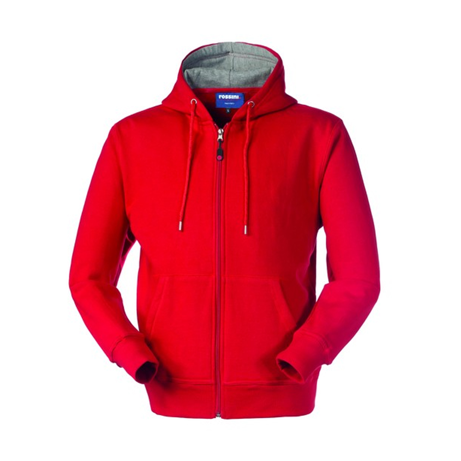 Calda e comoda felpa Rossini Lancelot ottima da utilizzare sia nel tempo libero che al lavoro nella stagione autunno-inverno. Dotata di chiusura centrale, cappuccio regolabile con cordino e tasconi anterori.