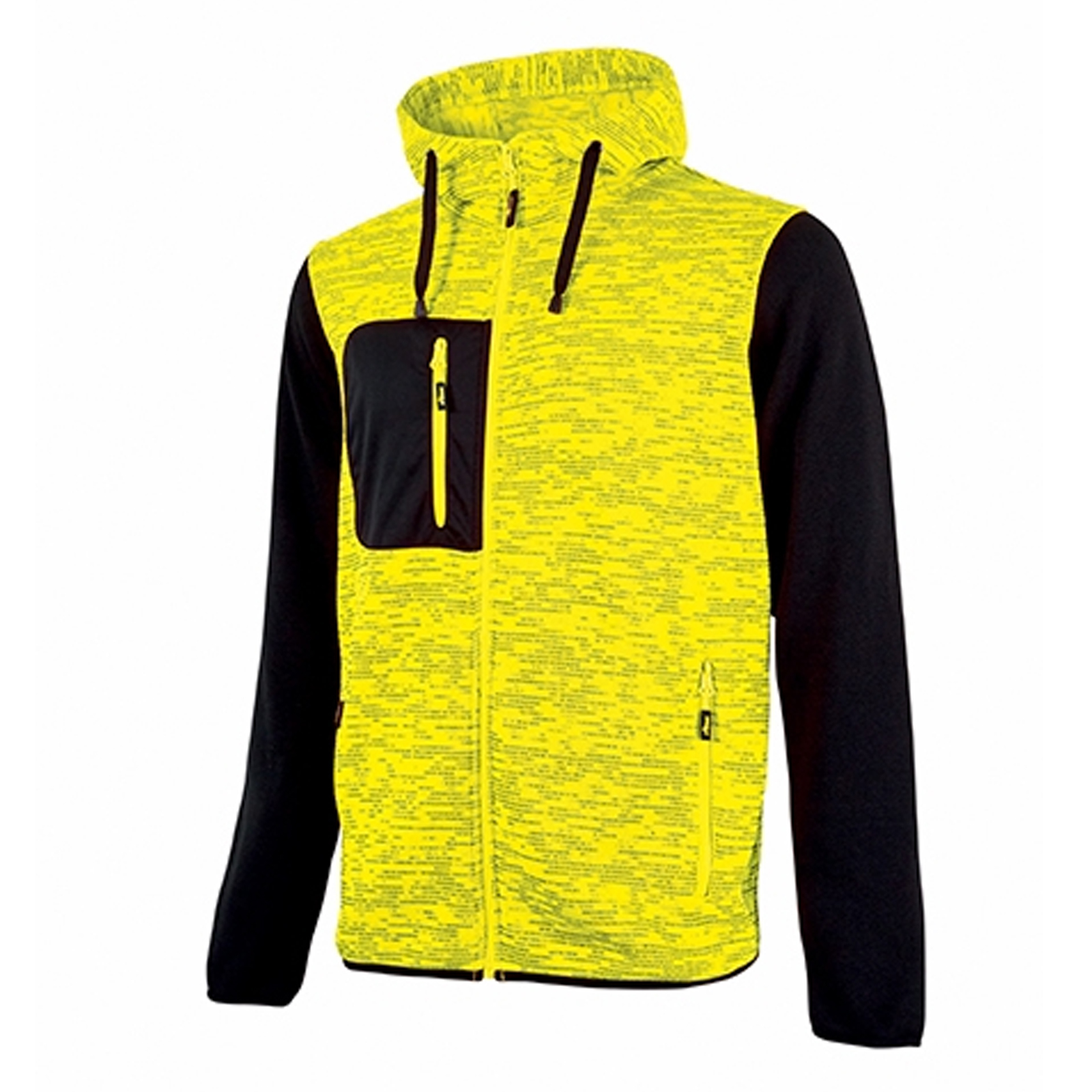 La felpa U-Power Rainbow è calda e pratica, soprattutto versatile dato che si può utilizzare sia a lavoro che nel tempo libero. La felpa è full-zip con interno in morbido pile, colletto alto e chiusura centrale con zip. I polsi e fondo sono in tessuto elasticizzato per adattarsi al corpo. Il cappuccio fisso è regolabile attraverso gli appositi lacci. La felpa possiede due tasche frontali e una tasca sul petto chiuse con zip.