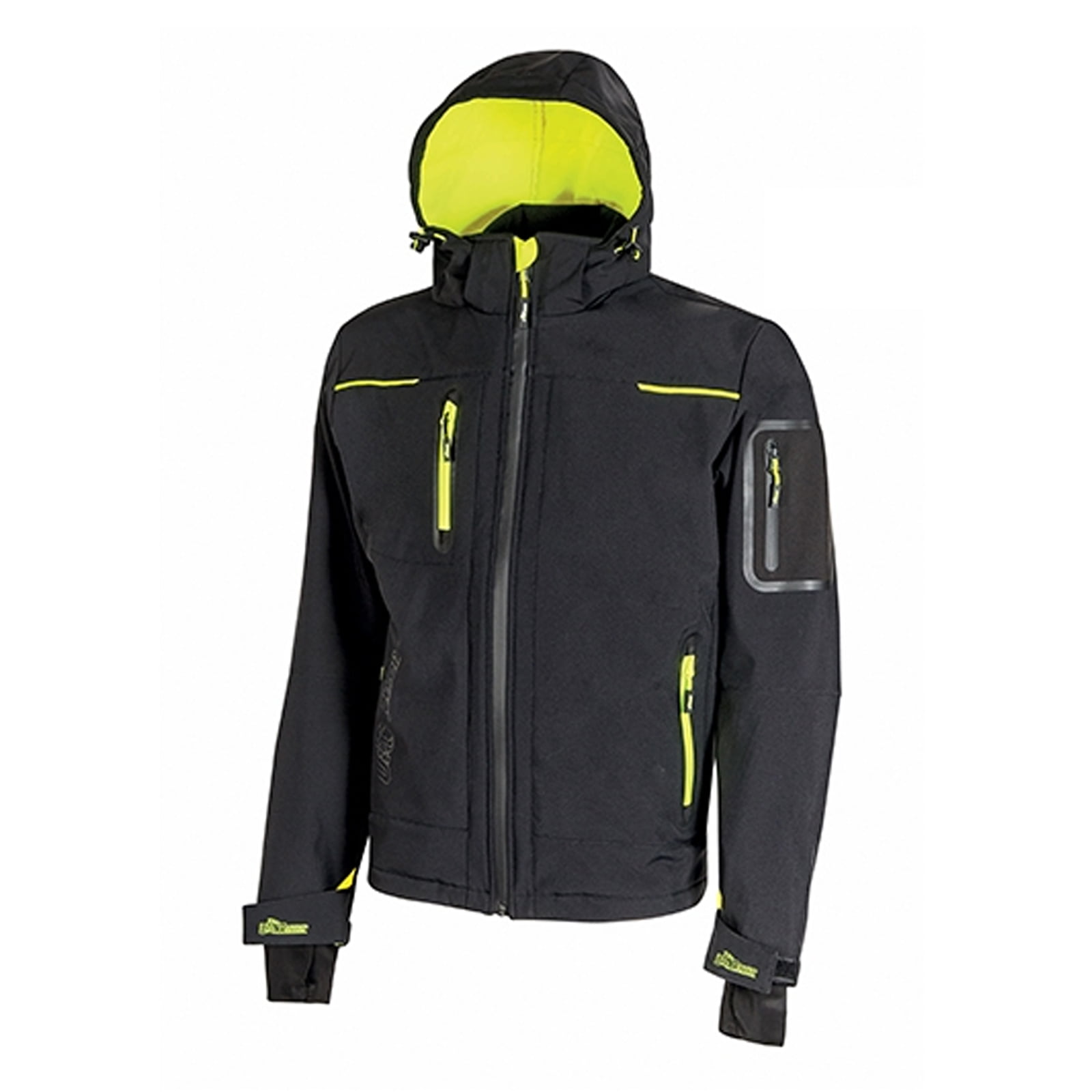 Giacca in Softshell con membrana U-Tex che rende il tessuto impermeabile, traspirante e antivento. La Space è una giacca molto comoda e resistente con una fodera interna in morbido micro-fleece fluo. È dotata inoltre di chiusura centrale con zip impermeabile. Presenti inserti in reflex per garantire la massima visibilità. Le maniche preformate conferiscono al capo una vestibilità ottimale, il cappuccio è regolabile e staccabile, è dotata di polsini regolabili con velcro e polsino antivento elasticizzato con foro passa-pollice.