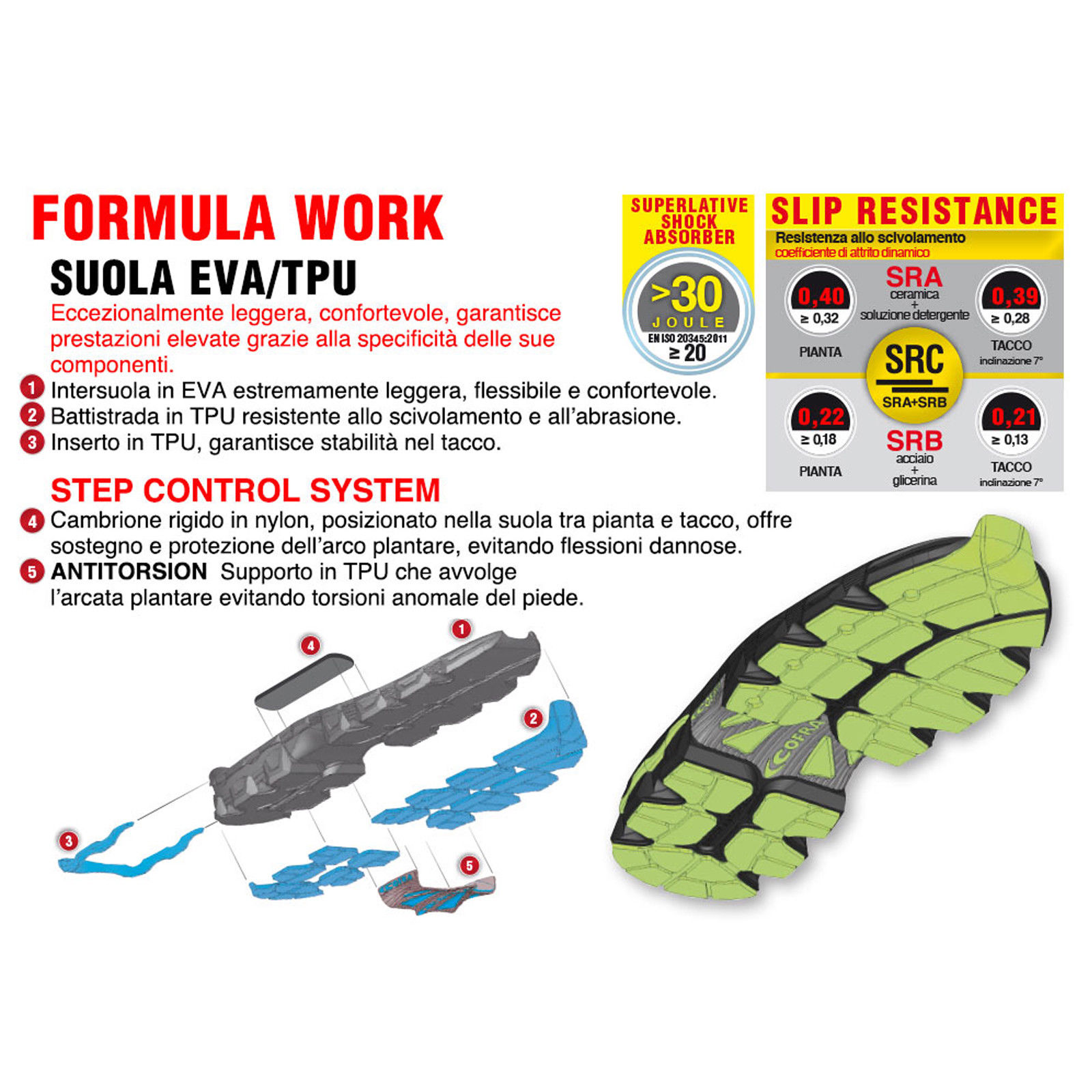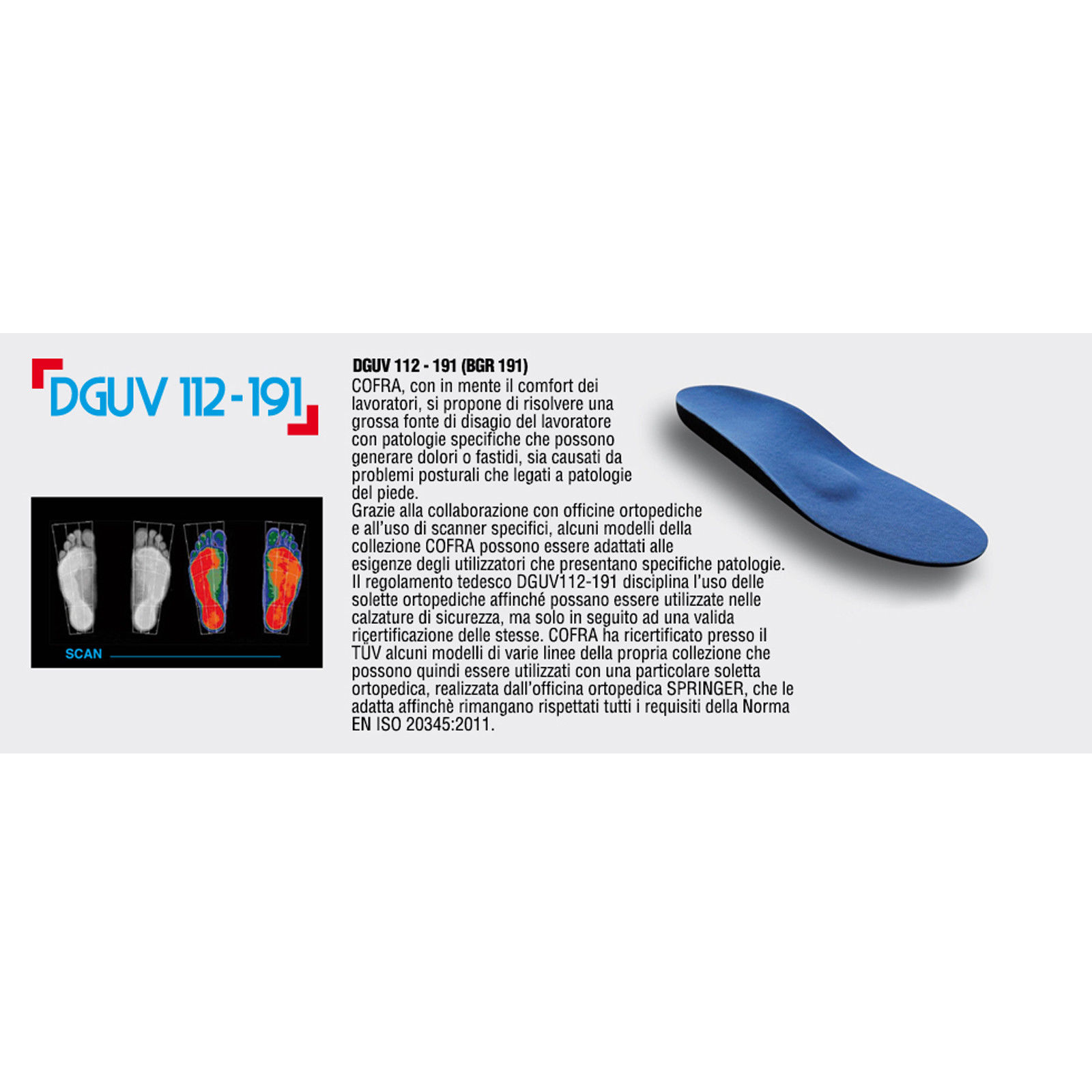 - SOLETTA: EVANIT, con speciale mescola di EVA e nitrile, ad elevata portanza e spessore variabile (12mm – 7mm – 3mm). Termoformata, anatomica, forata e rivestita in tessuto altamente traspirante. Antistatica grazie ad uno specifico trattamento superficiale e a cuciture realizzate con filati conduttivi