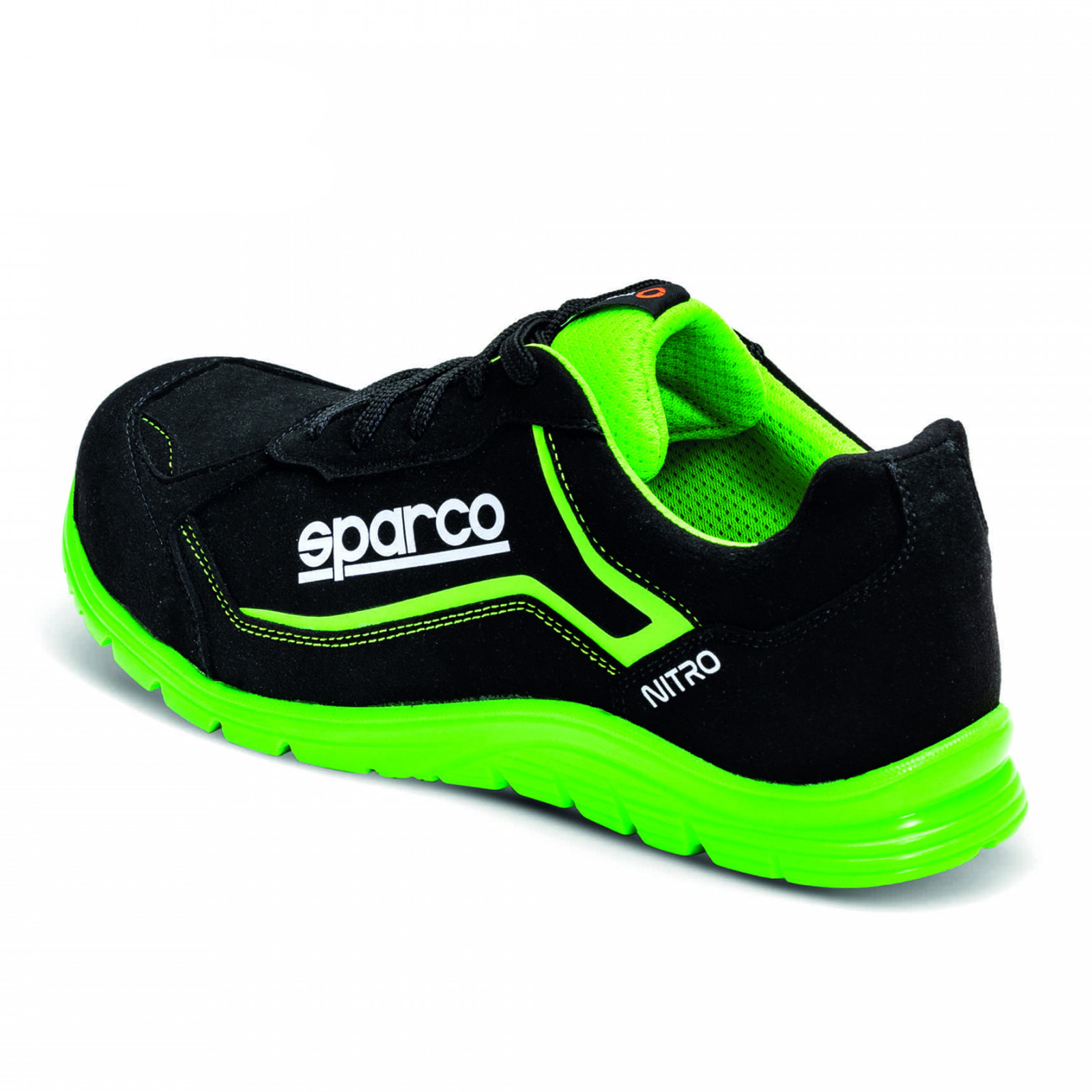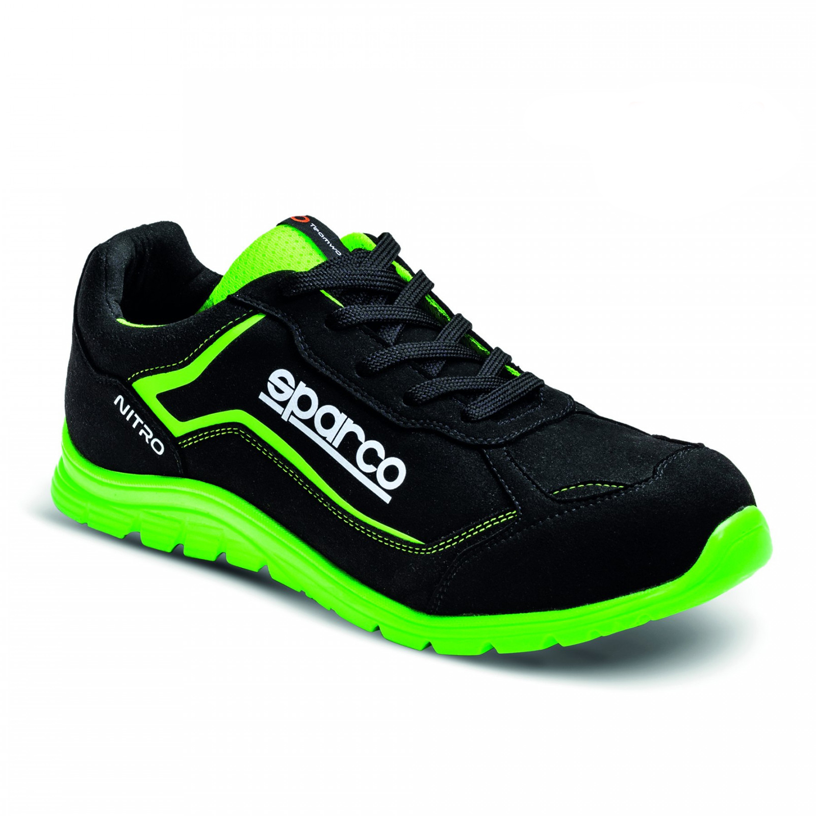 Scarpe Antinfortunistiche Ott S3 SRC Sparco Teamwork da lavoro in pelle fiore impermeabile, colore nero verde fluo