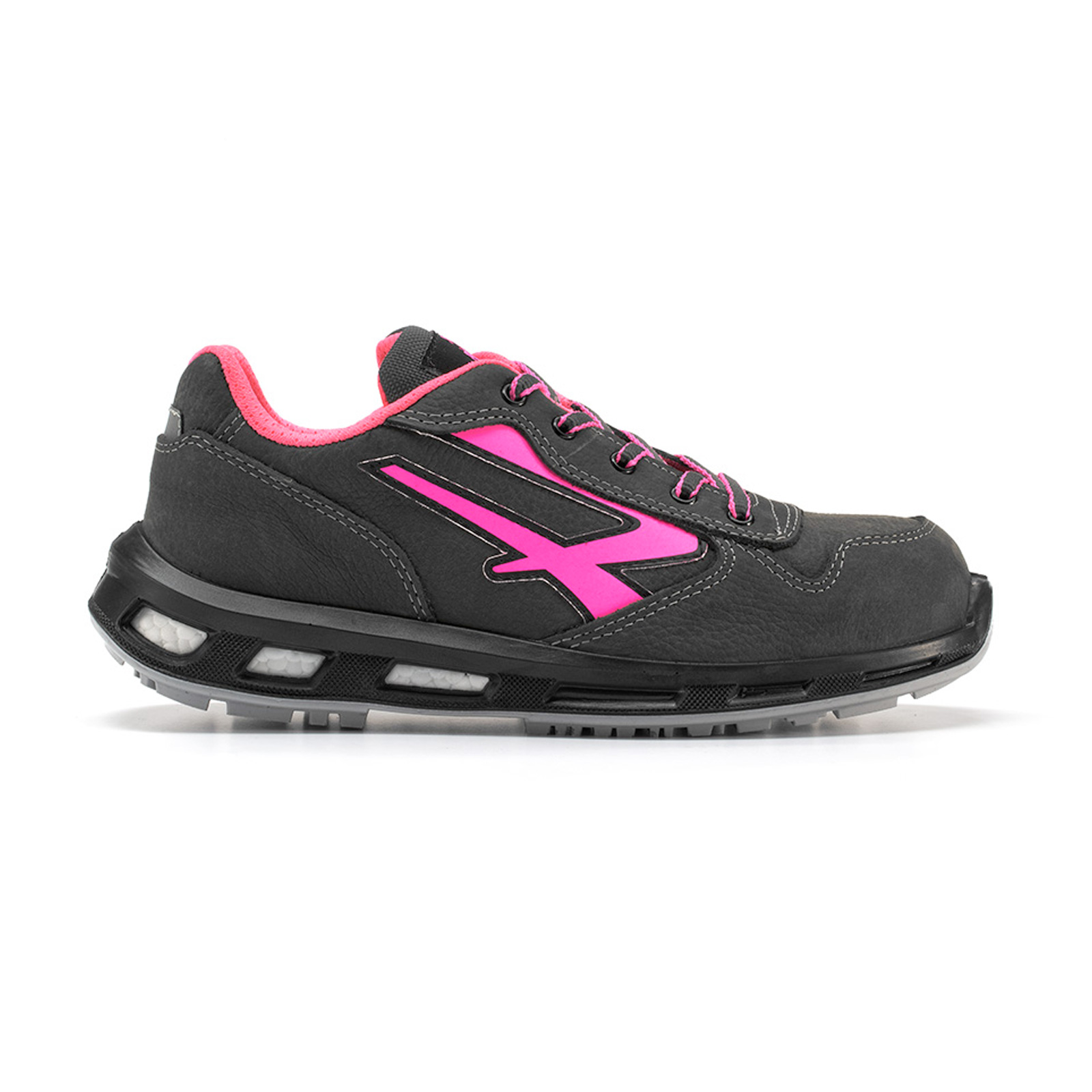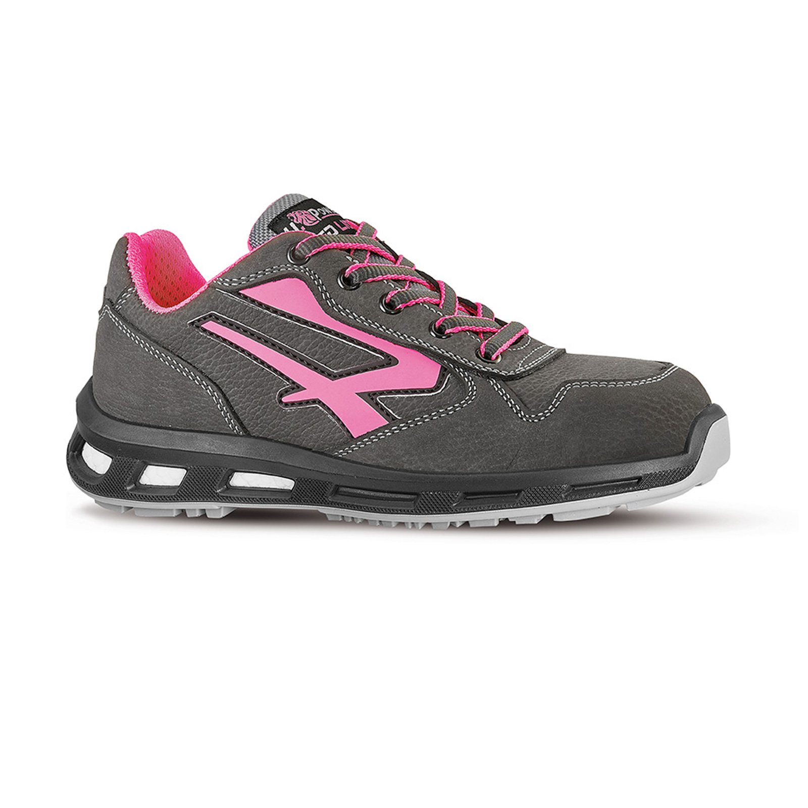 Scarpe antinfortunistiche basse, leggere e comode U-Power della linea Red Lion, con tomaia in pelle nabuk naturale bottalato, traspiranti, idrorepellente, puntale in alluminio, antiperforazione, antiscivolo e suola PU/PU, infinergy S3 CI SRC ESD.