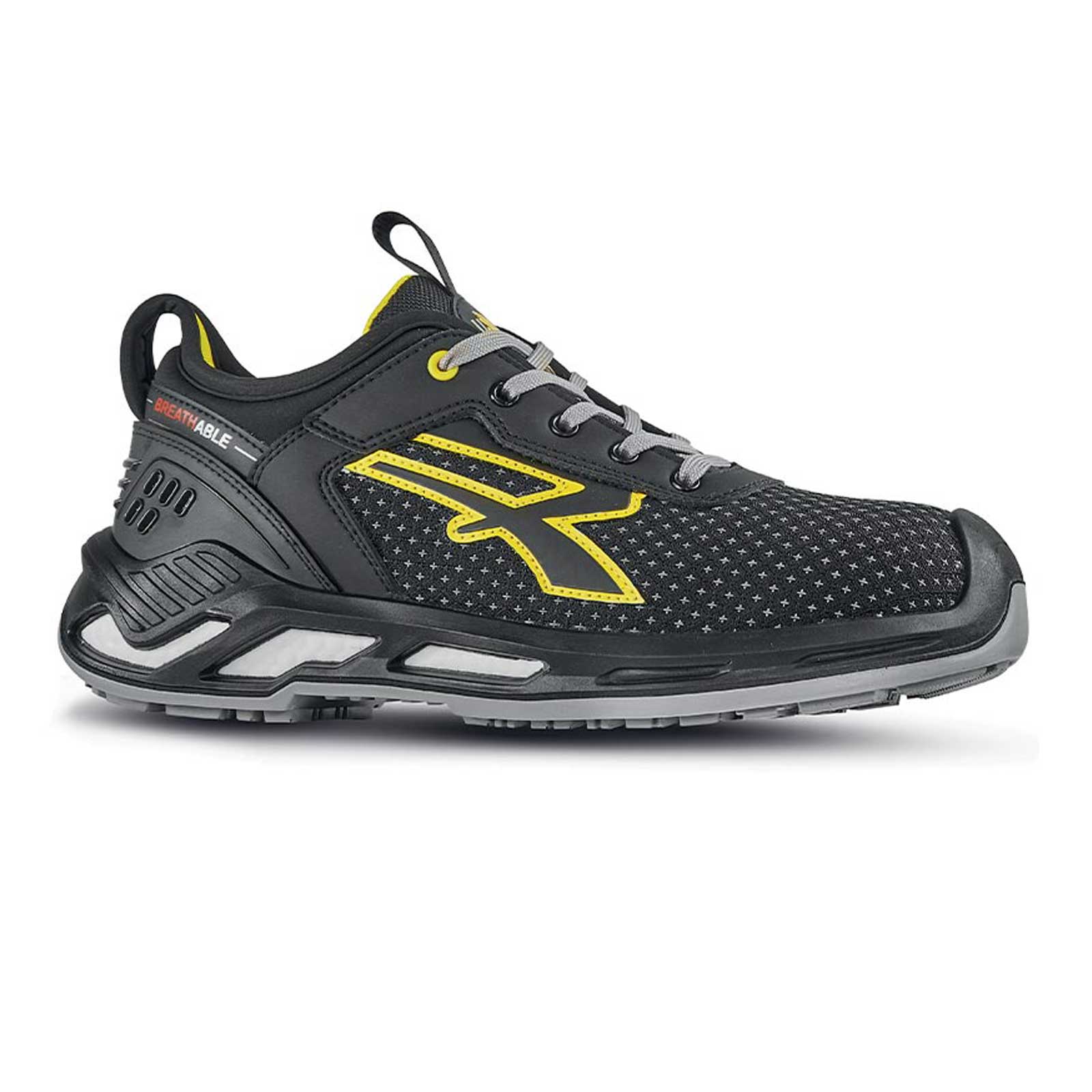 Scarpe antinfortunistiche basse, leggere e comode U-Power della linea Red 360, con tomaia in PUTEK® star altamente resistente all’abrasione, collarino con tessuto in fibra Lycra®, puntalino in PU e tallonetta anti-shock, puntale in alluminio, antiperforazione, antiscivolo e suola PU/PU infinergy, S3 SRC CI ESD