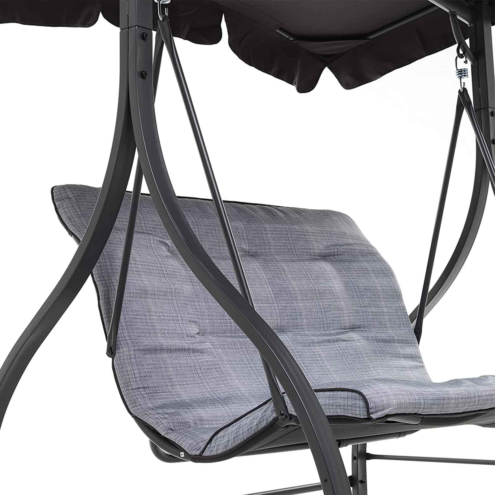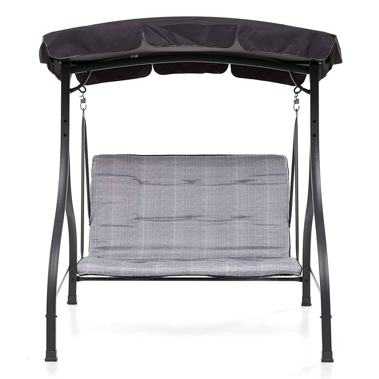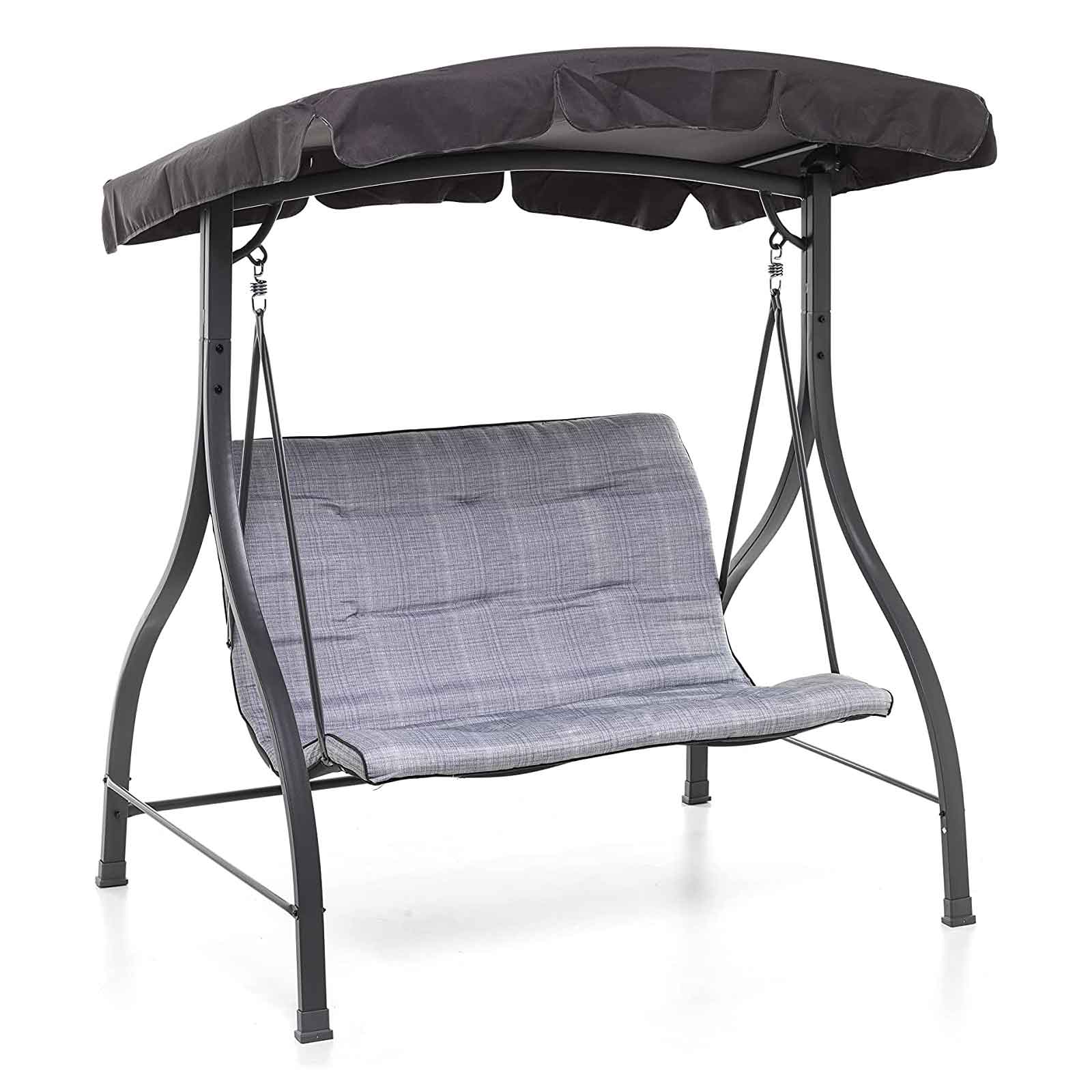 Dondolo da giardino a due posti con solida struttura in tubolare di ferro verniciato a polvere epossidica di colore antracite.