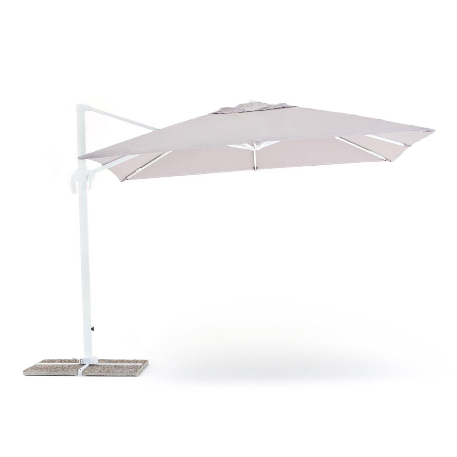 Elegante ombrellone da giardino inclinabile e impermeabile colore grigio con palo decentrato e braccio laterale a sbalzo, misura 3×3 metri altezza 2,7 metri.