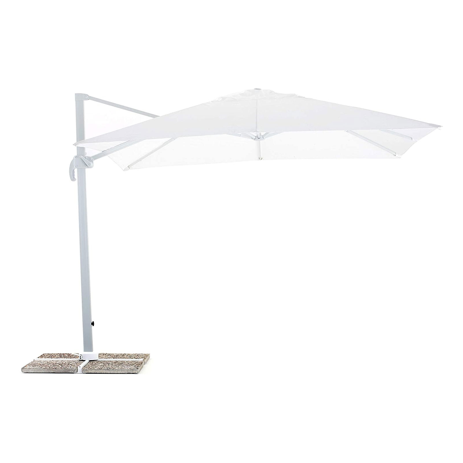 Elegante ombrellone inclinabile e impermeabile colore bianco con palo decentrato e braccio laterale a sbalzo misura 3×4 metri altezza 2,7 metri.
