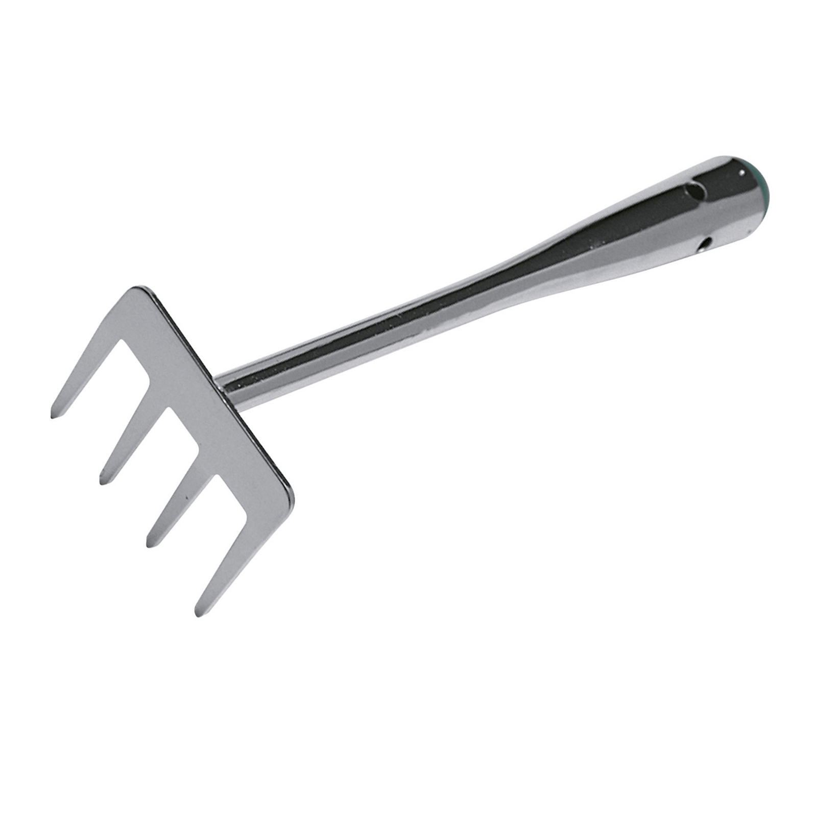Pratico mini rastrello marchio Papillon con 4 denti per piccoli lavori e attività di giardinaggio, ideale per la preparazione del terreno e tanti piccoli altri lavori da giardino. La composizione interamente in acciaio inossidabile riduce aderenza del suolo per maggiore comodità durante l’uso.