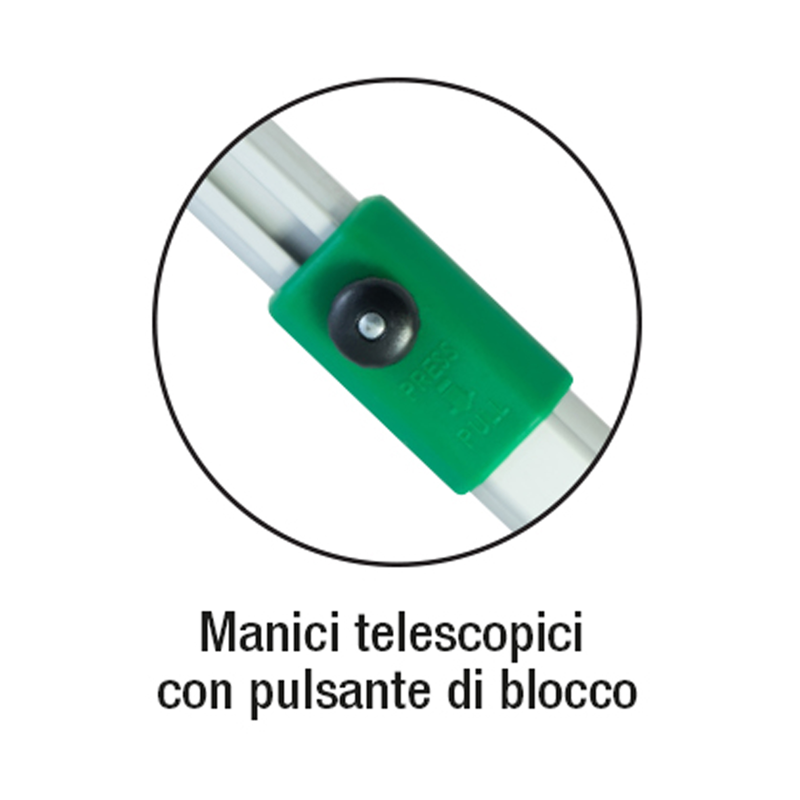 - manici telescopici ovali in alluminio con pulsante di blocco