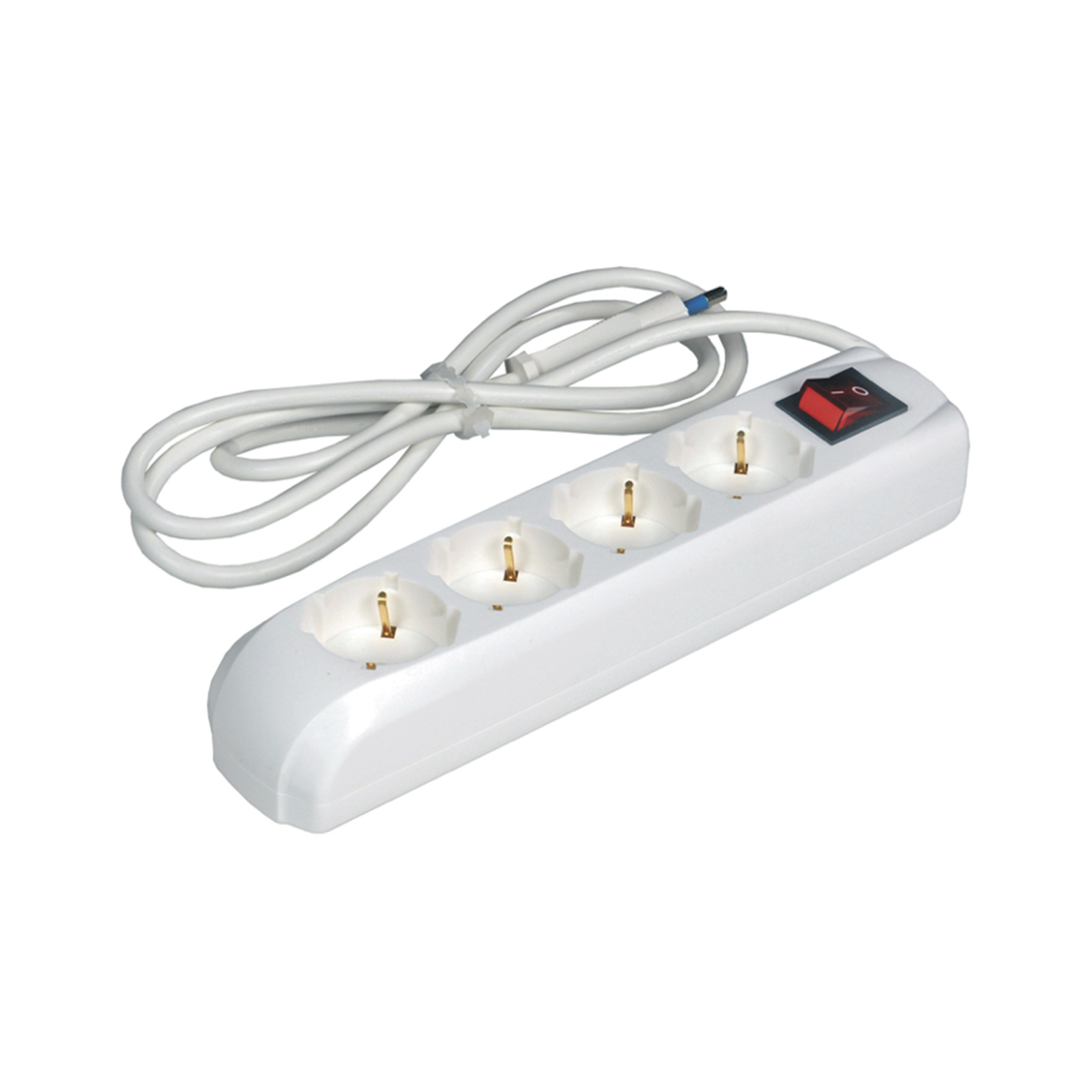 Multi presa con 4 uscite Schuko 2P+T 16A bipasso – Spina 2P+T 16A – Lunghezza cavo 1,5 mt. – Sezione cavo 3×1 mm. – Interruttore