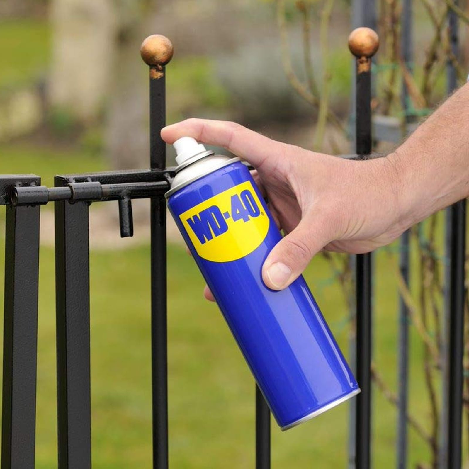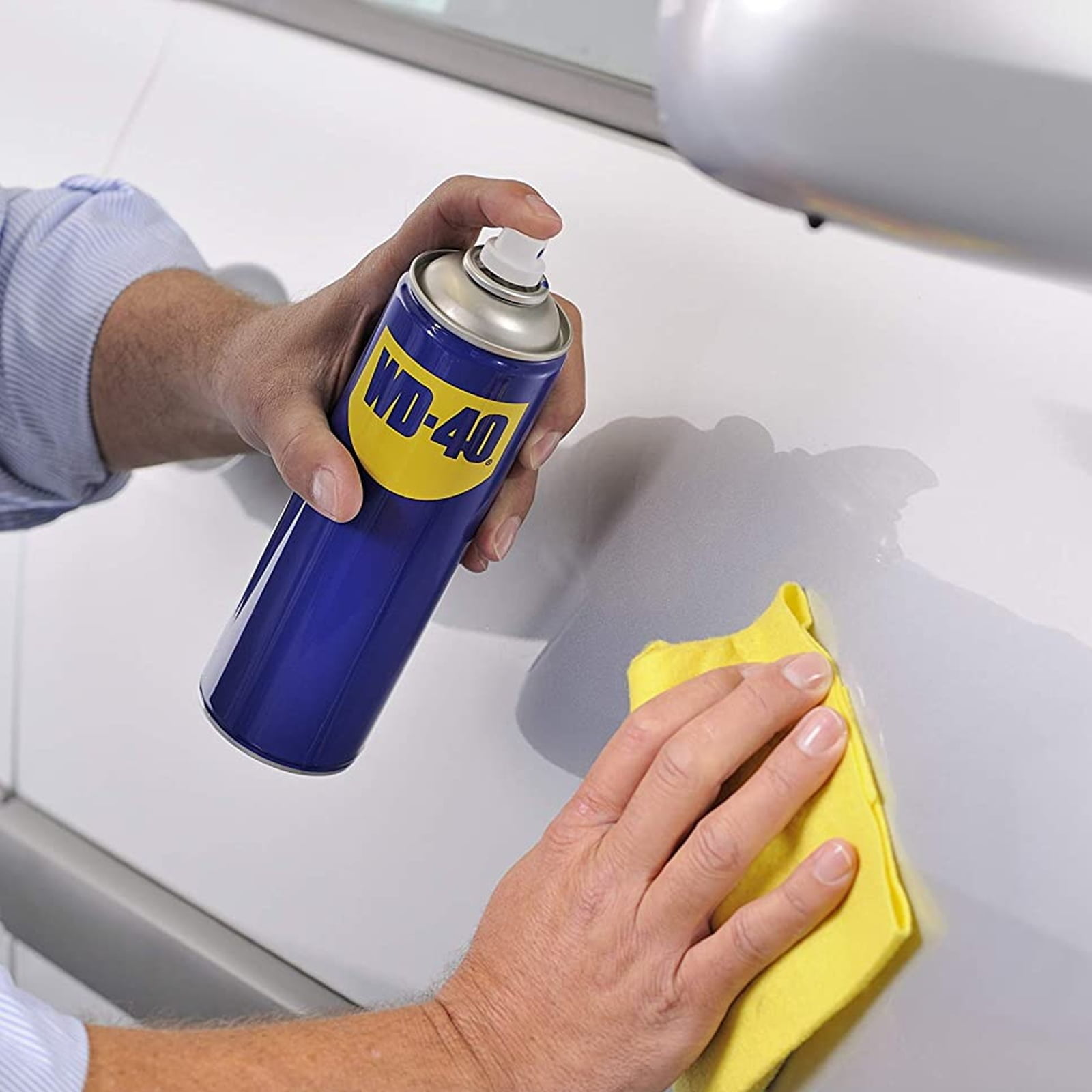 WD-40 Prodotto Multifunzione protegge il metallo da ruggine e corrosione, penetra e lubrifica nelle parti bloccate, elimina e protegge dall’umidità qualsiasi superficie. Inoltre, rimuove le macchie di grasso, catrame e colla da qualunque superficie non porosa.