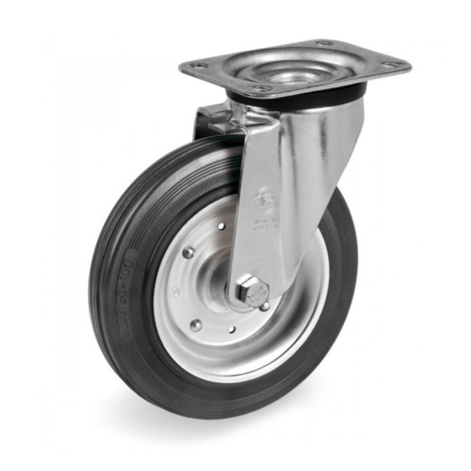Ruota in gomma standard, nucleo composto da due dischi in lamiera, supporto rotante piastra NL settore industriale per carichi leggeri