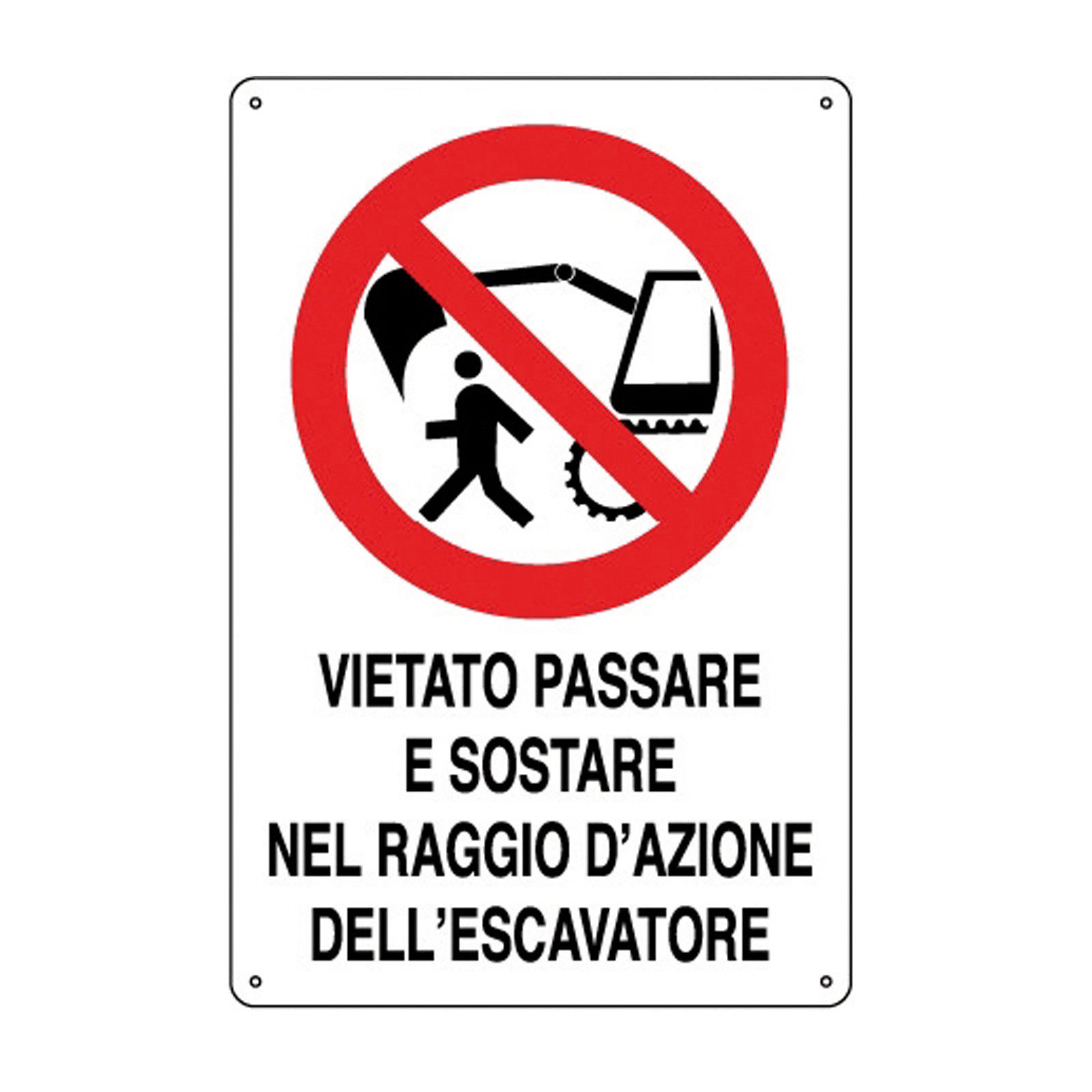Cartello polionda “Vietato passare e sostare nel raggio d’azione dell’escavatore”
