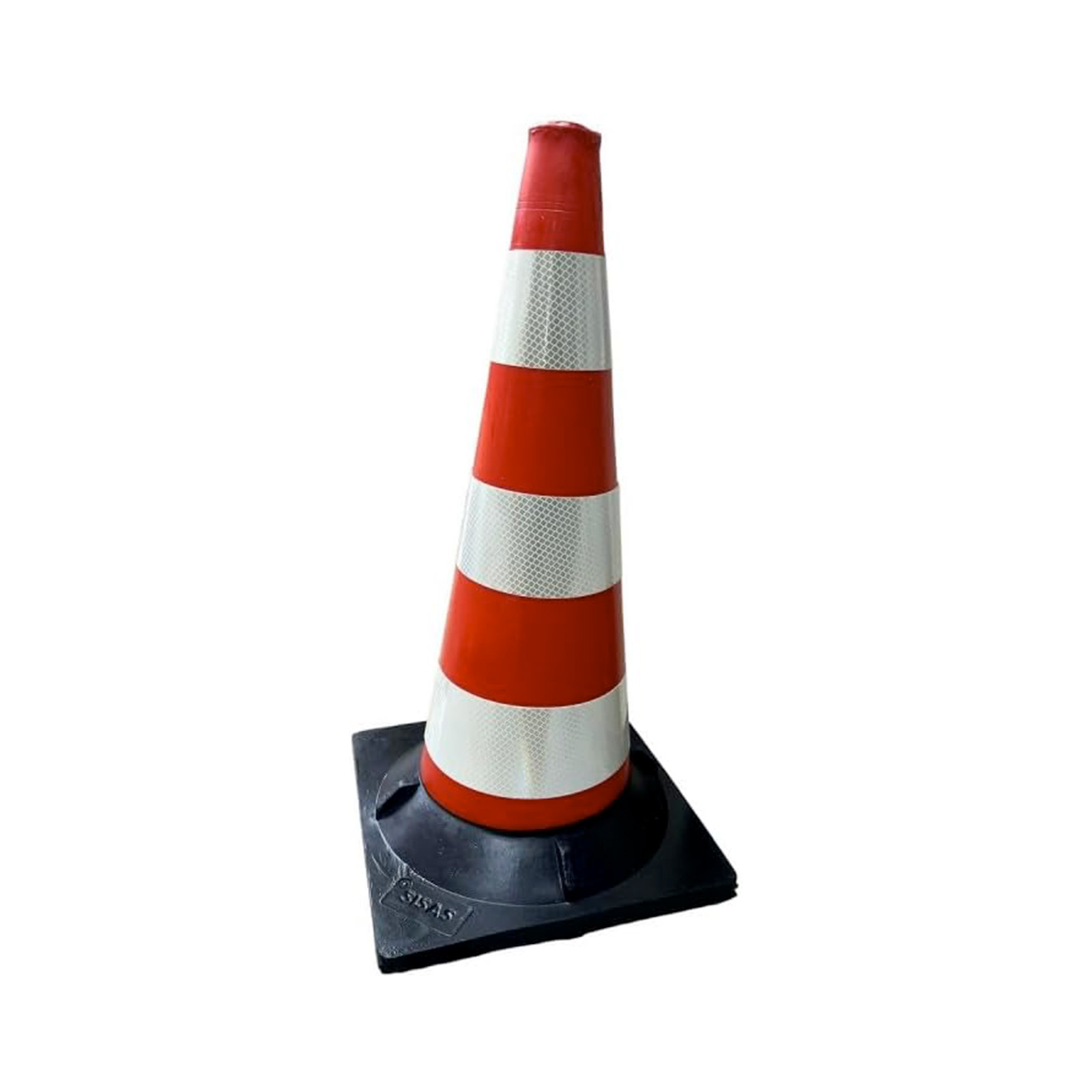 Cono stradale in gomma h 50cm 3 fasce rifrangenti High Intensity Grade classe 2