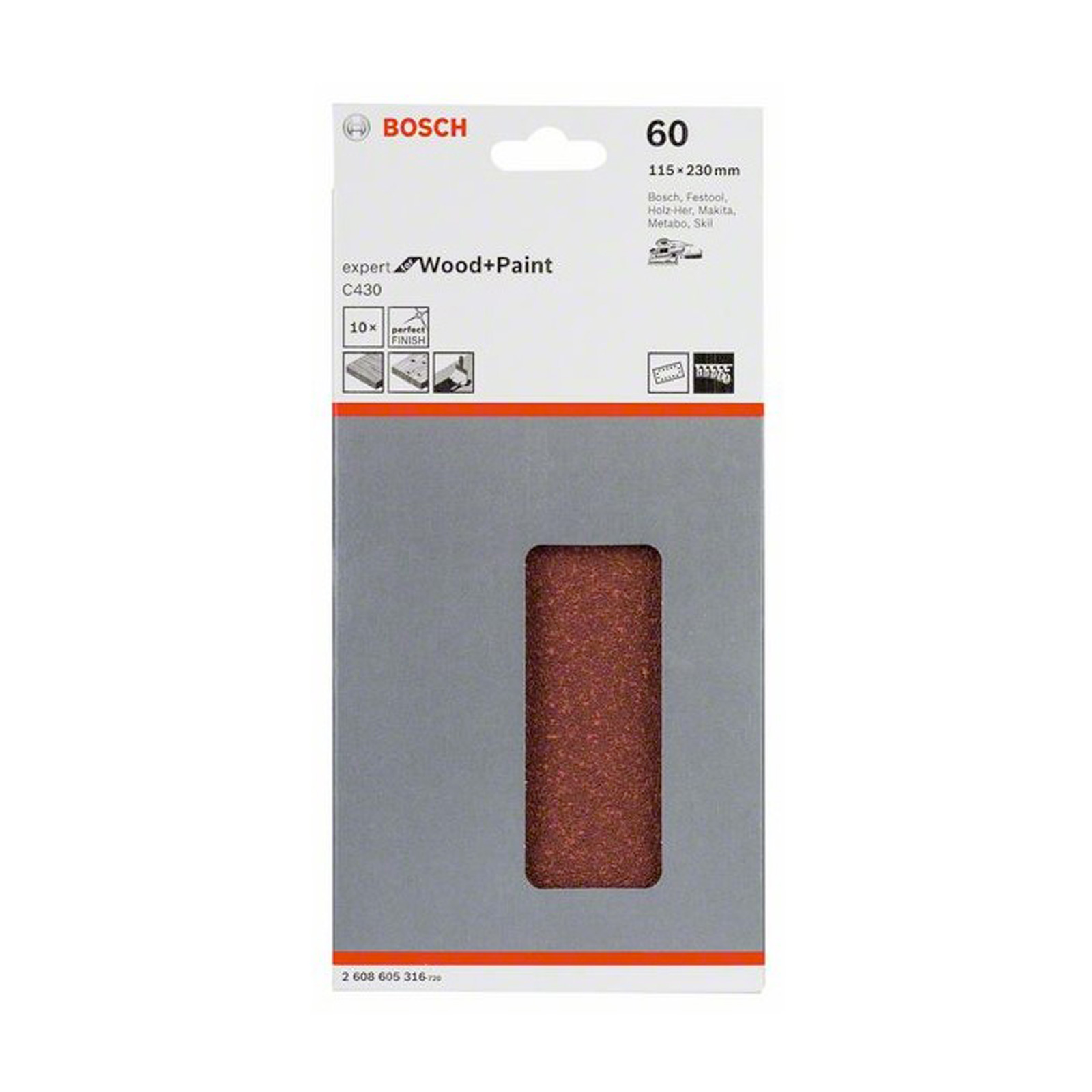 Bosch Fogli abrasivi C430 115×230 mm, 60G per levigatrici, 10 pezzi