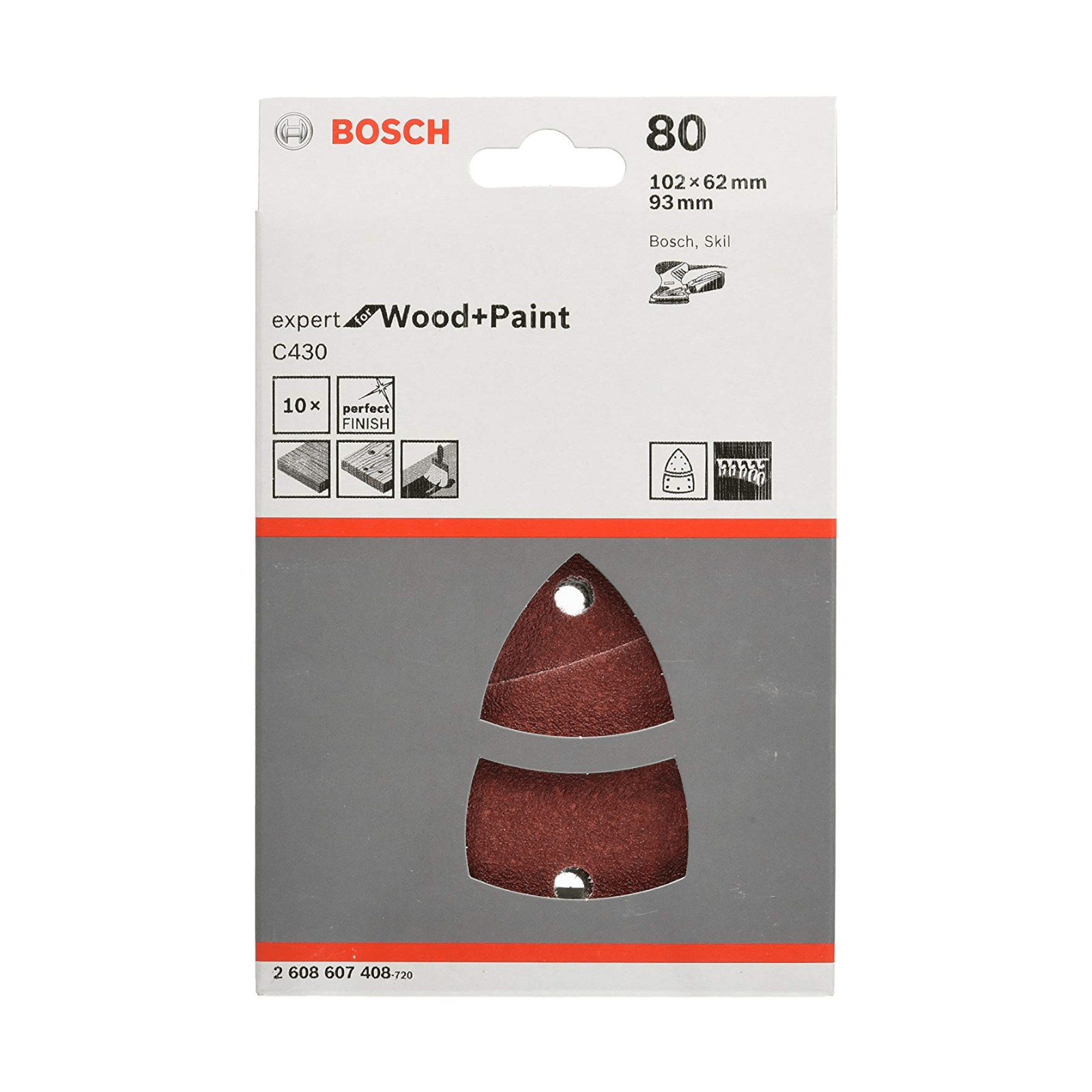 Bosch 10 fogli abrasivi P80 per palmare 102X62.93 mm, 2608607408