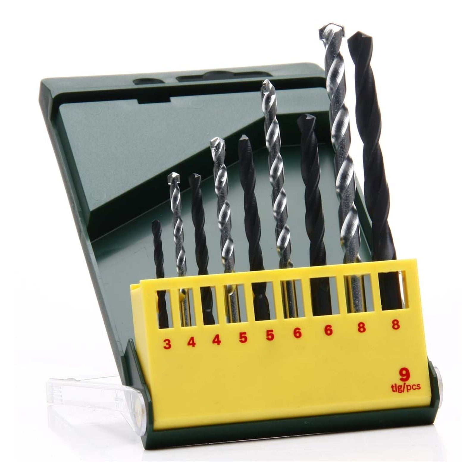 La scatole contiene 5 punte per metallo HSS-R Ø 3/4/5/6/8 mm e 4 punte per pietra HM Ø 4/5/6/8 mm
