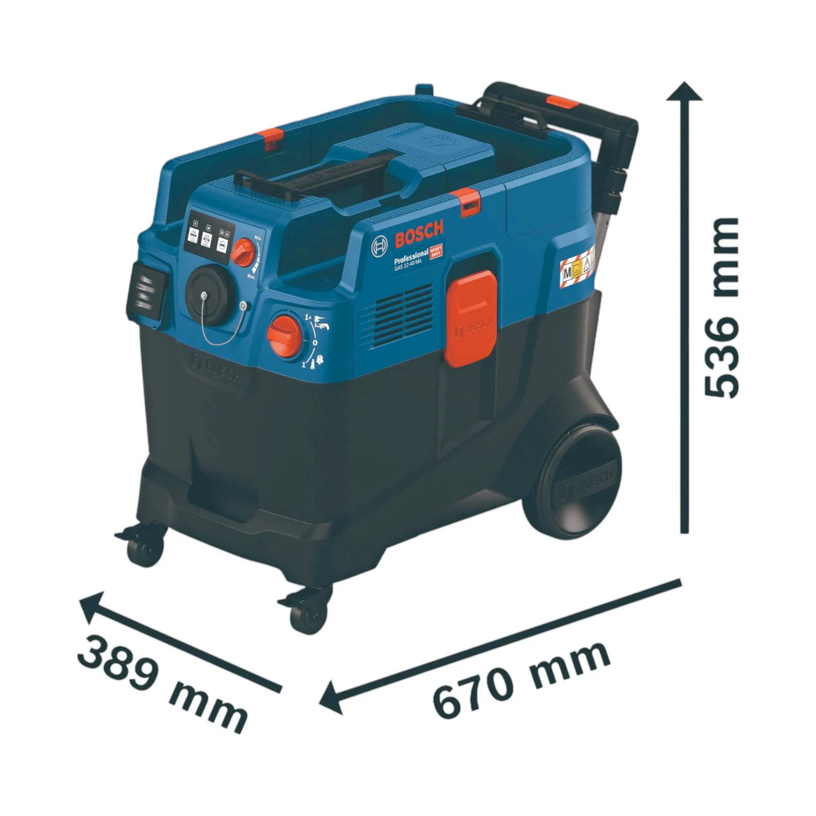 Il Bosch GAS 12-40 MA Professional rimuove la maggior parte dei materiali, come la polvere fine e pesante, umida e secca, che si libera durante la fresatura del calcestruzzo, la molatura, il taglio del cartongesso e la levigatura delle pareti in gesso.
