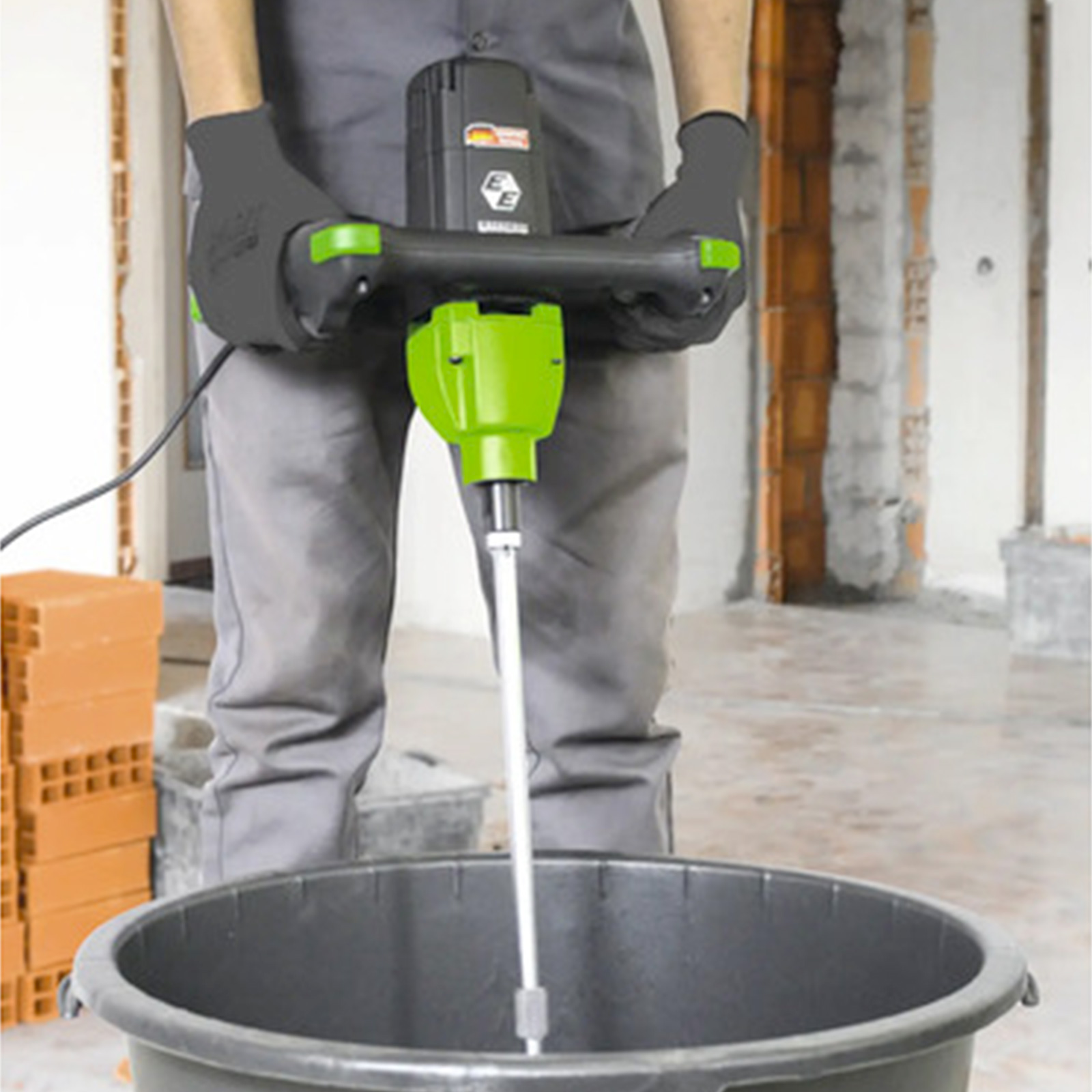 L’agitatore Eibenstock MXT 1300 è un potente strumento progettato per miscelare materiali da costruzione con viscosità bassa e media, come vernici, adesivi, stucco, malta e colla per piastrelle