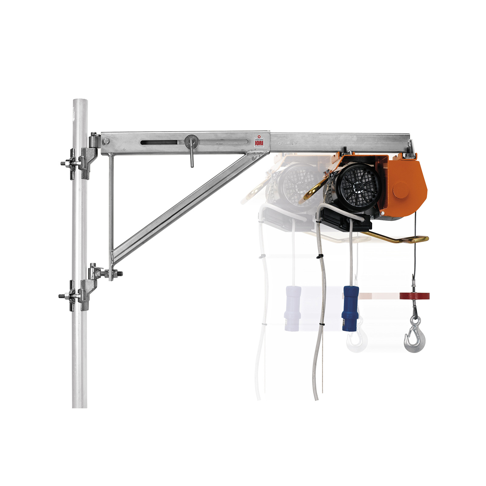Accessorio ideale per l’installazione sul ponteggio. Permette uno sbraccio da 900mm a 1200mm con la possibilità di evitare ostacoli che si venissero a trovare lungo la verticale di carico, pesa 13kg.
