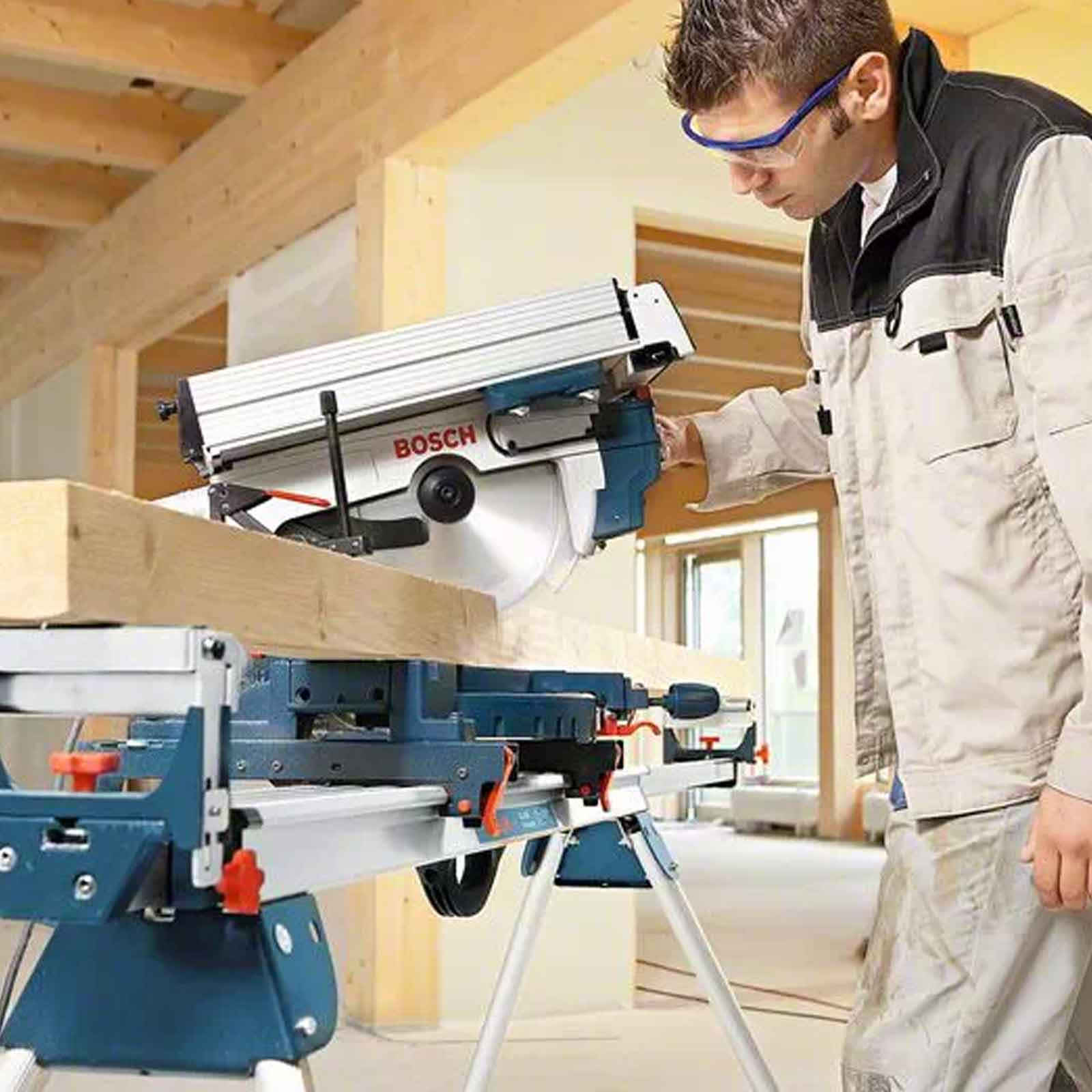 Questa troncatrice combinata è concepita per il taglio del legno. È compatibile con il sistema di aspirazione della polvere Click & Clean Bosch nonché con vari supporti.