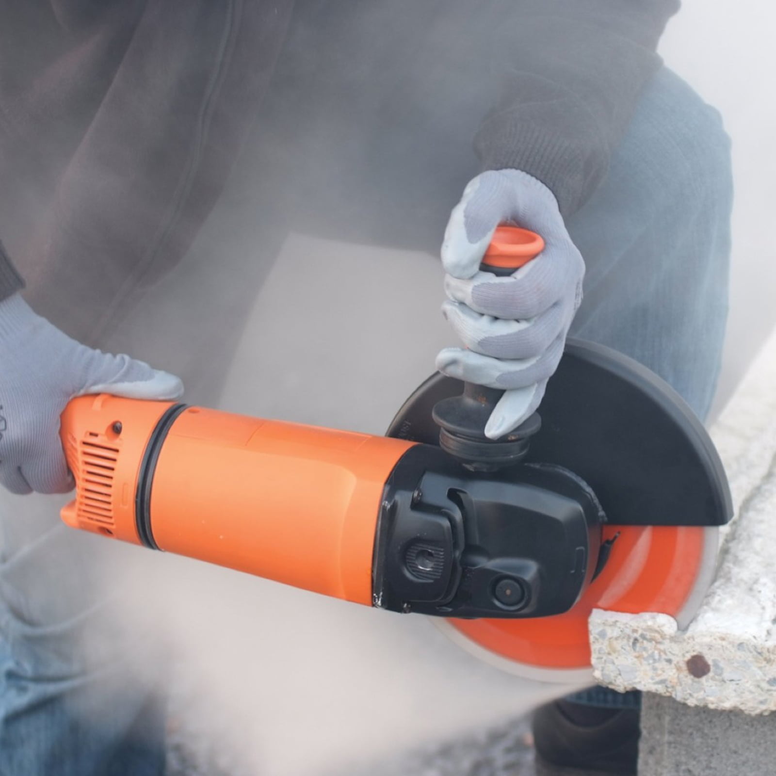 Potente smerigliatrice angolare disco da 230 mm e motore ad avviamento progressivo da 2400 Watt.