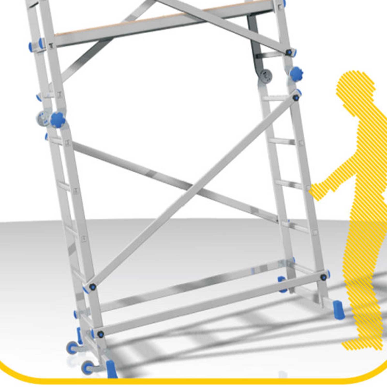 Un unico prodotto, tante soluzioni di lavoro. Veloce da montare senza utilizzo di chiavi o attrezzi, e facile da riporre per le contenute dimensioni, ideale per lavori di manutenzioni o imbiancatura.
