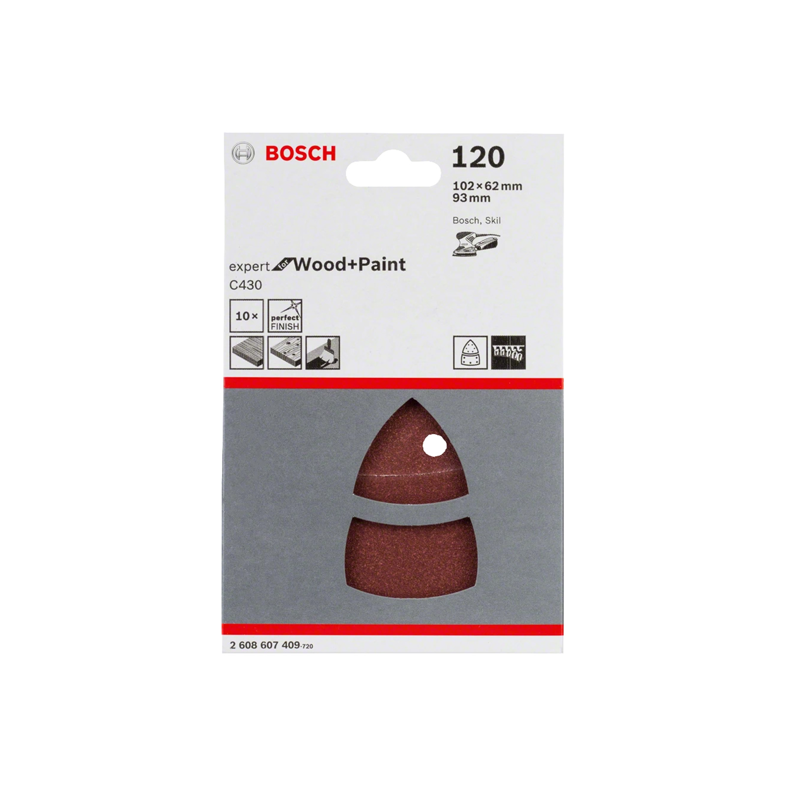 Set di fogli abrasivi da 10 pezzi Bosch C430 Expert for Wood and Paint 102X62.93 mm grana 120