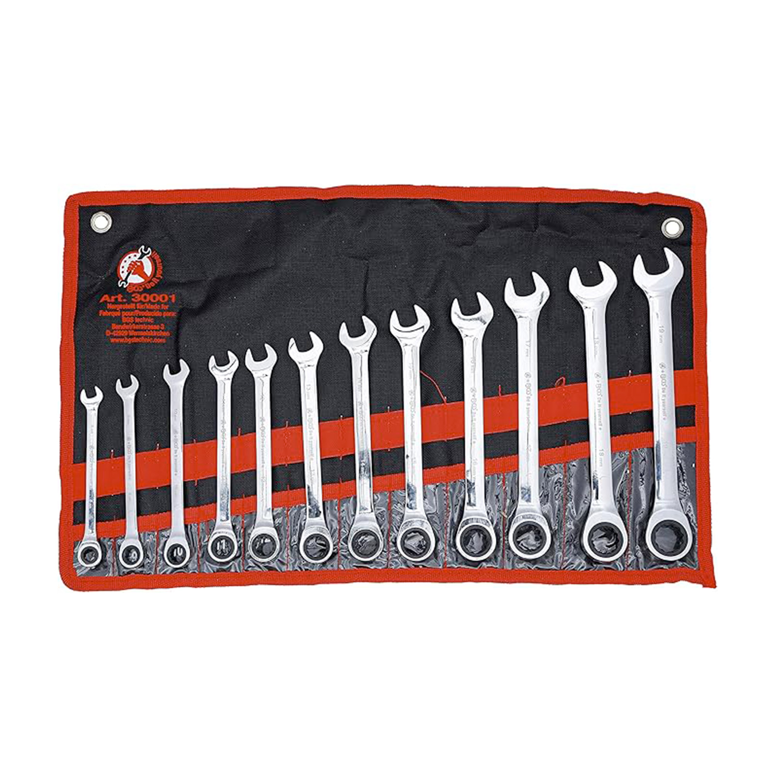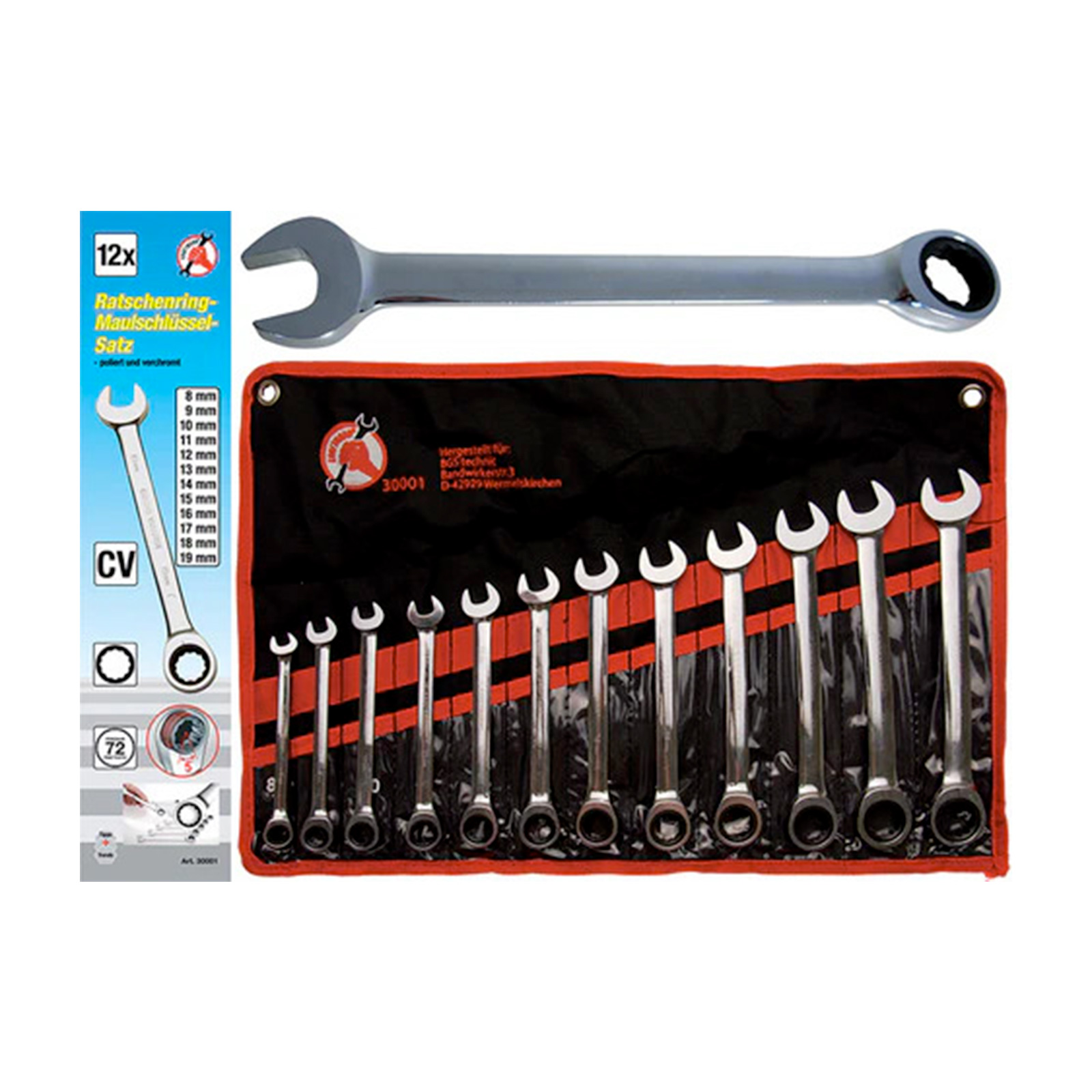 Set 12 pezzi chiavi combinate a cricchetto 8-19 mm.